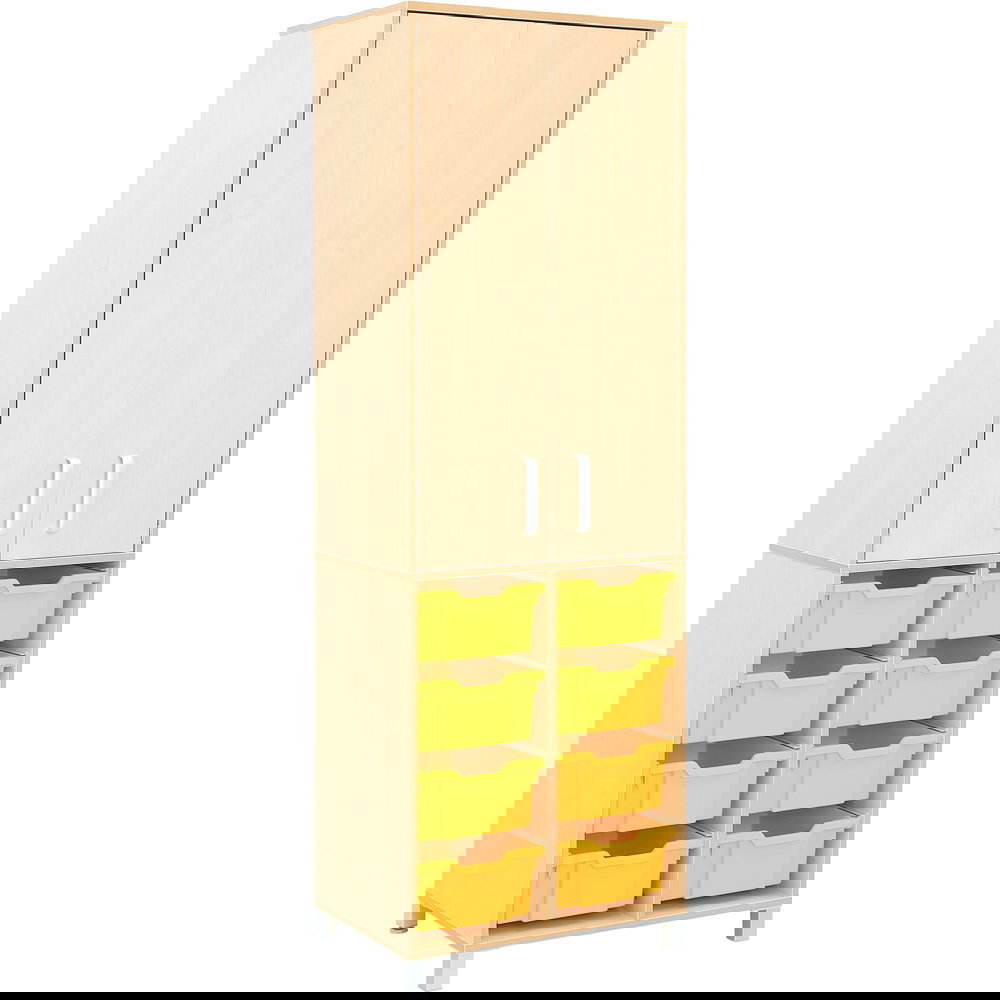 Wenn Räume wachsen müssen, ohne an Grundfläche zu verlieren, ist intelligentes Möbeldesign gefragt. Das Flexi Aufsatzregal L ist die größte Erweiterungslösung unserer Flexi-Serie und verwandelt einfache Basiselemente in beeindruckende Hochschränke. Mit einer stattlichen Höhe von über 115 cm nutzt dieser Aufsatz den vertikalen Raum optimal aus und schafft Kapazitäten, die in gut organisierten Kitas, Schulen oder Büros unverzichtbar sind.