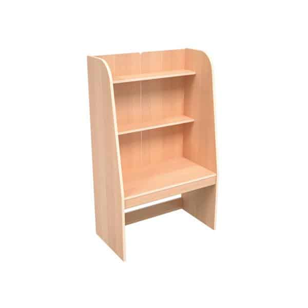 Bücherregal aus laminierter Spanplatte (Stärke: 18 mm) in Birke-Optik mit farbigen Elementen. Ergänzende Produkte: kleine Rollbehälter – Seite FL012