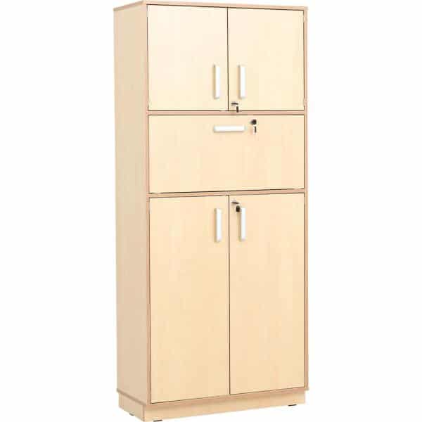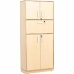 Mit seinem zeitlosen Dekor in Birke und der hochwertigen Verarbeitung fügt sich der Hochschrank harmonisch in bestehende Einrichtungskonzepte ein. Er bietet nicht nur Platz für Akten und persönliche Gegenstände, sondern sorgt durch seine abschließbaren Türen auch für die nötige Sicherheit und Privatsphäre.