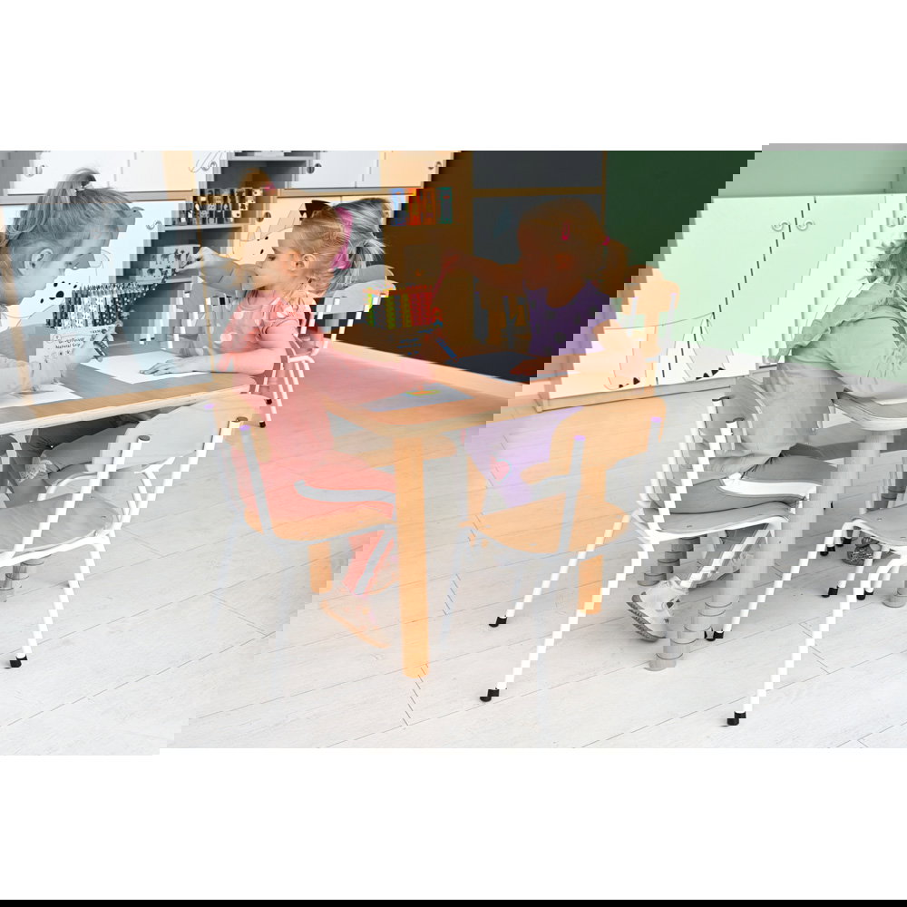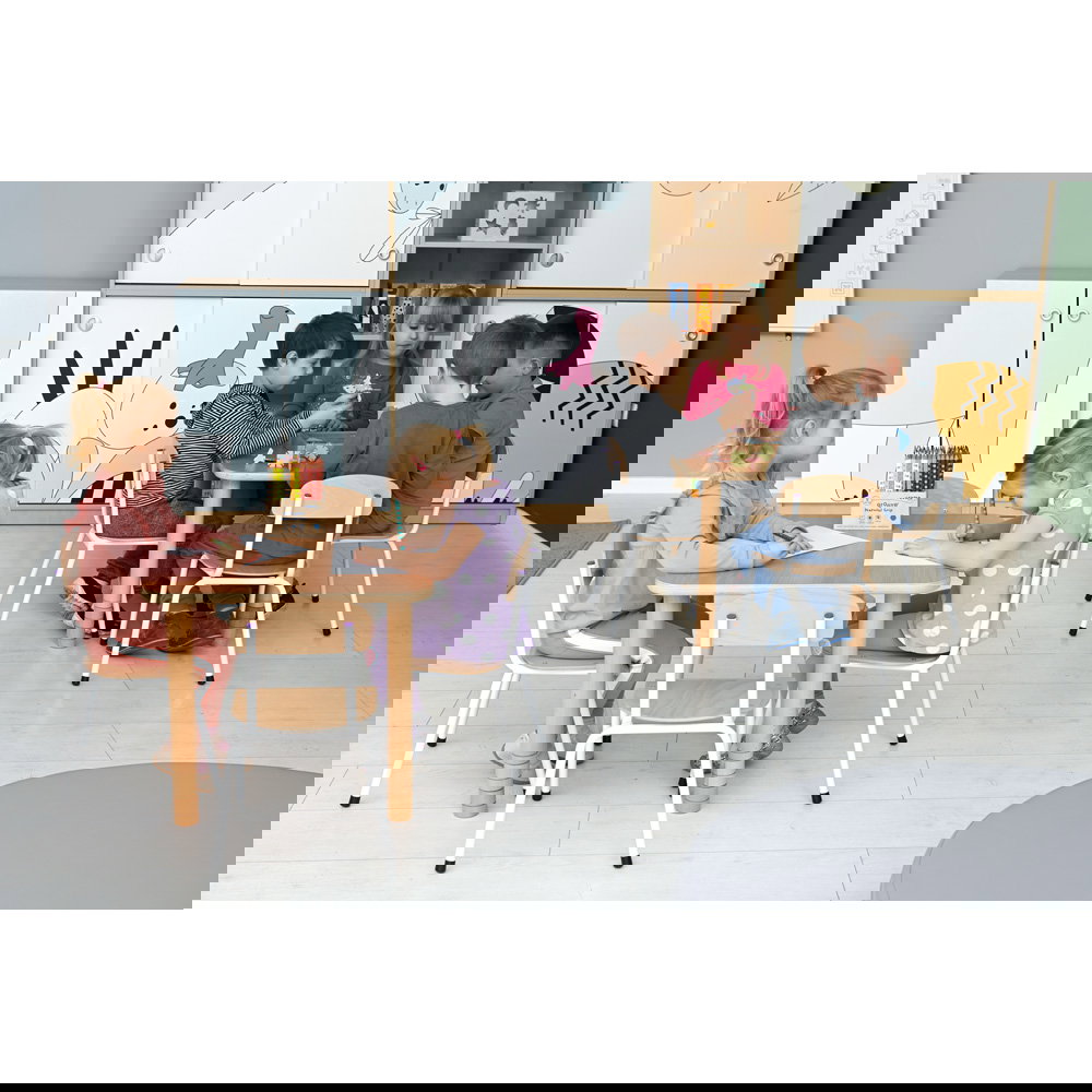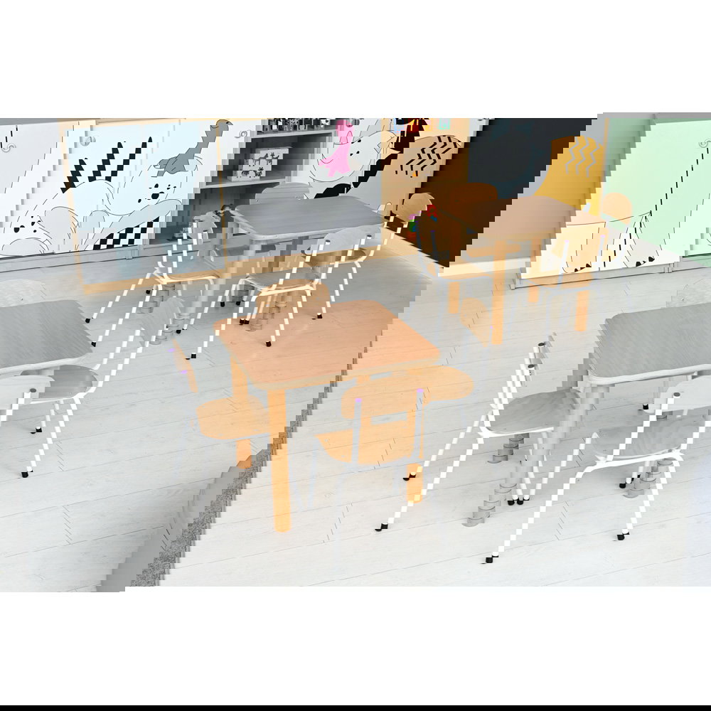 Die Tischbeine sind mit einem umweltfreundlichen Acryllack auf Wasserbasis lackiert. Das bedeutet: Keine unangenehmen Gerüche oder schädlichen Dämpfe von Anfang an. Eltern und Erzieher können sicher sein, dass die Kinder in einer unbelasteten Umgebung spielen. - Vielseitige Kombinationsmöglichkeiten