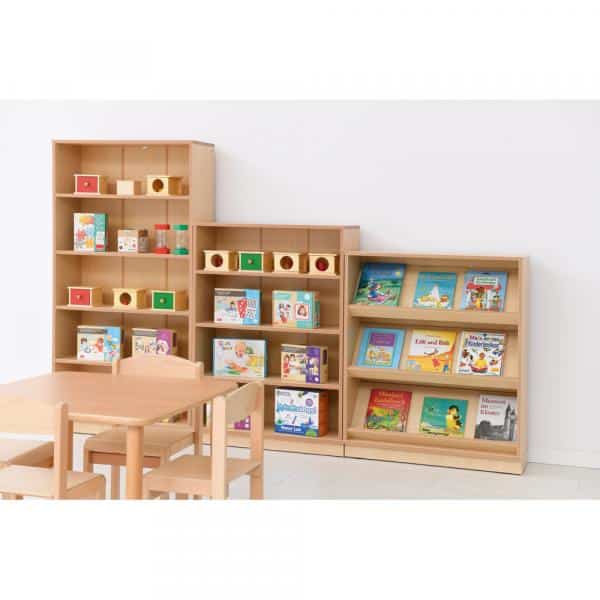Das Flexi Regal klassisch, ausgeführt in warmem Birke-Dekor, ist ein vielseitiges Juwel für jeden Raum, in dem Kinder lernen und spielen. Mit einer angenehmen Höhe von 120 cm und drei anpassbaren Einlegeböden ist es das ideale Bücherregal, das jedoch mit seiner Vielseitigkeit ebenso für Spiele und Lehrmaterialien hervorragend geeignet ist. Die offene Konstruktion erlaubt Kindern, ihre Schätze selbständig zu erreichen und fördert ihre Selbstständigkeit und Organisationsfähigkeit.