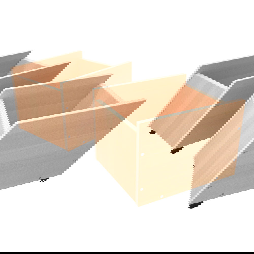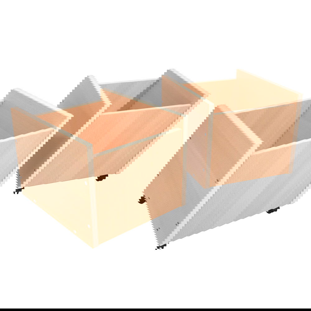 Dieser kompakte Rollcontainer ist ein wahres Organisationstalent. Er wurde als integraler Bestandteil unserer Flexi-Möbelserie entwickelt und passt perfekt in die dafür vorgesehenen Fächer von Regalen und Bänken, wie zum Beispiel den Modellen 096660-096663, 096545 oder 100601B. So wird aus einer offenen Nische eine geschlossene, aufgeräumte Schublade auf Rädern. Nach dem Spielen wird der Behälter einfach wieder in sein „Zuhause“ geschoben – das Aufräumen wird so zum intuitiven Teil des Spiels. Mit einer Auswahl an fröhlichen Farben oder im klassischen Birke-Dekor fügt er sich harmonisch in jedes Raumkonzept ein und setzt dabei gezielte, freundliche Akzente.