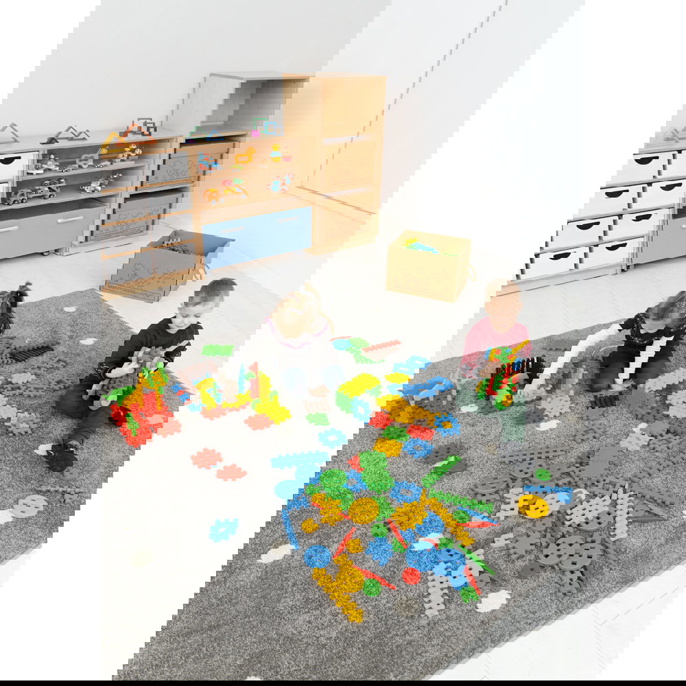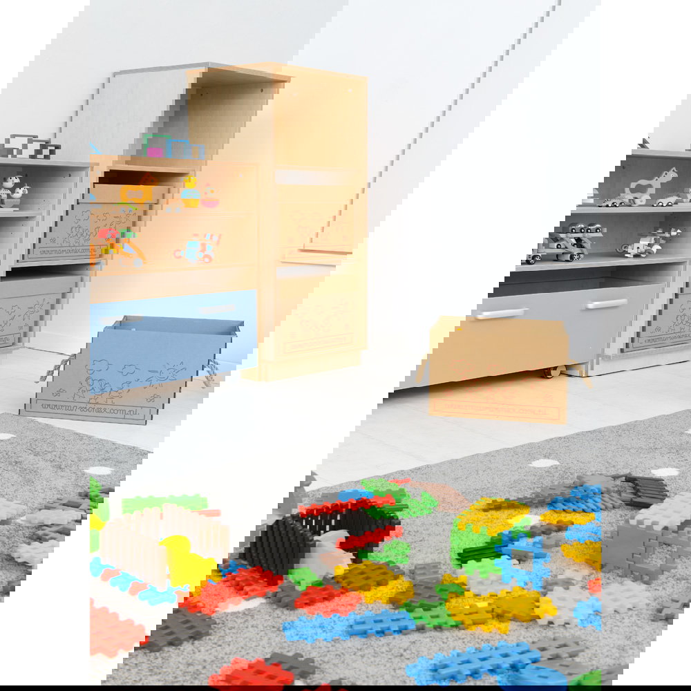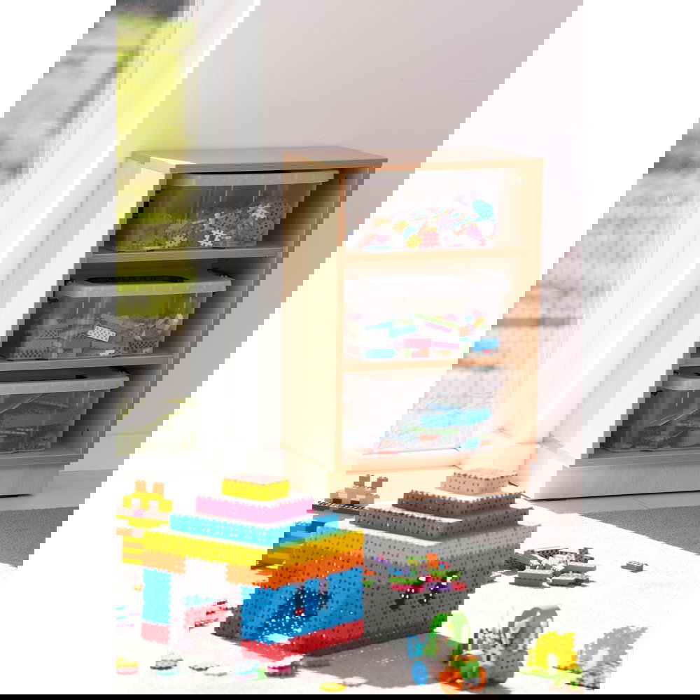 Der Flexi Schrank mit Waffel-Bausteinen ist die Antwort auf den Wunsch nach pädagogisch wertvollem Spielzeug, das den Alltag nicht ins Chaos stürzt.