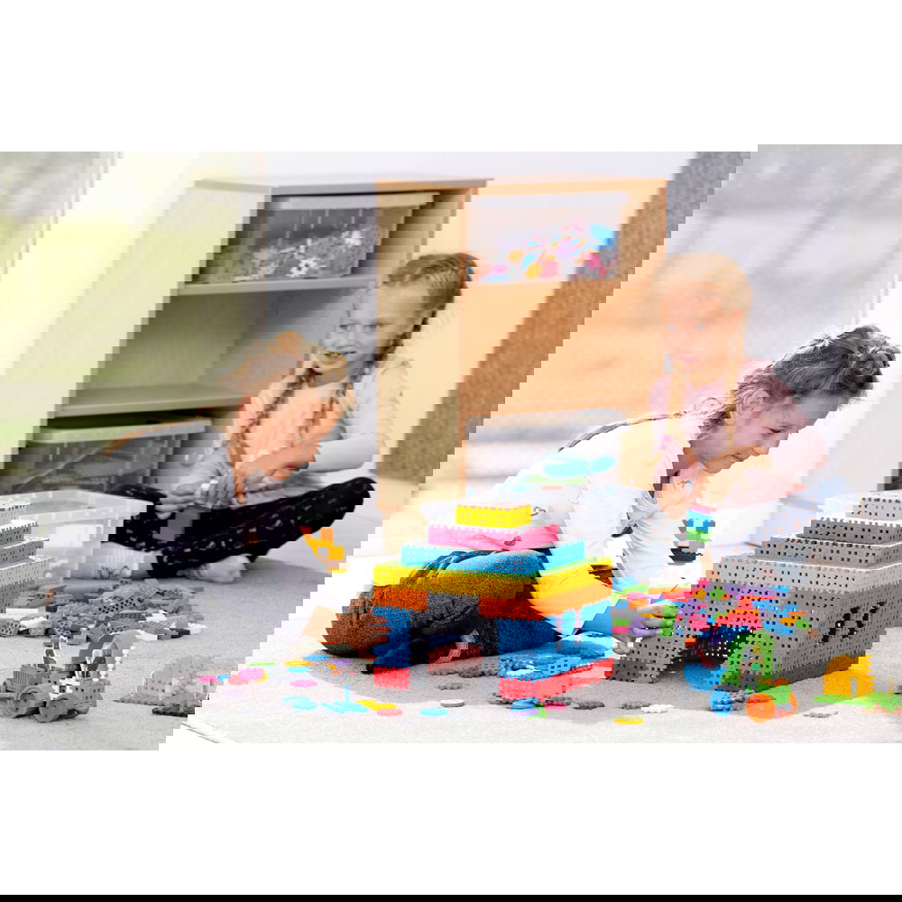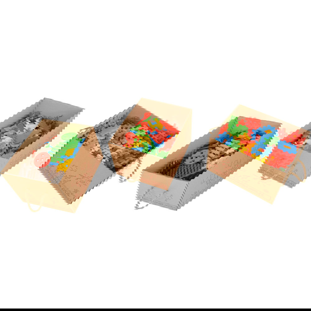 Die enthaltenen Waffel-Bausteine sind ein Klassiker der frühkindlichen Bildung. Durch das Zusammenstecken trainieren Kinder ihre Hand-Auge-Koordination und Feinmotorik. Ob einfache Türme oder komplexe Fantasiewelten – die Bausteine bieten endlose Möglichkeiten zur Entfaltung.