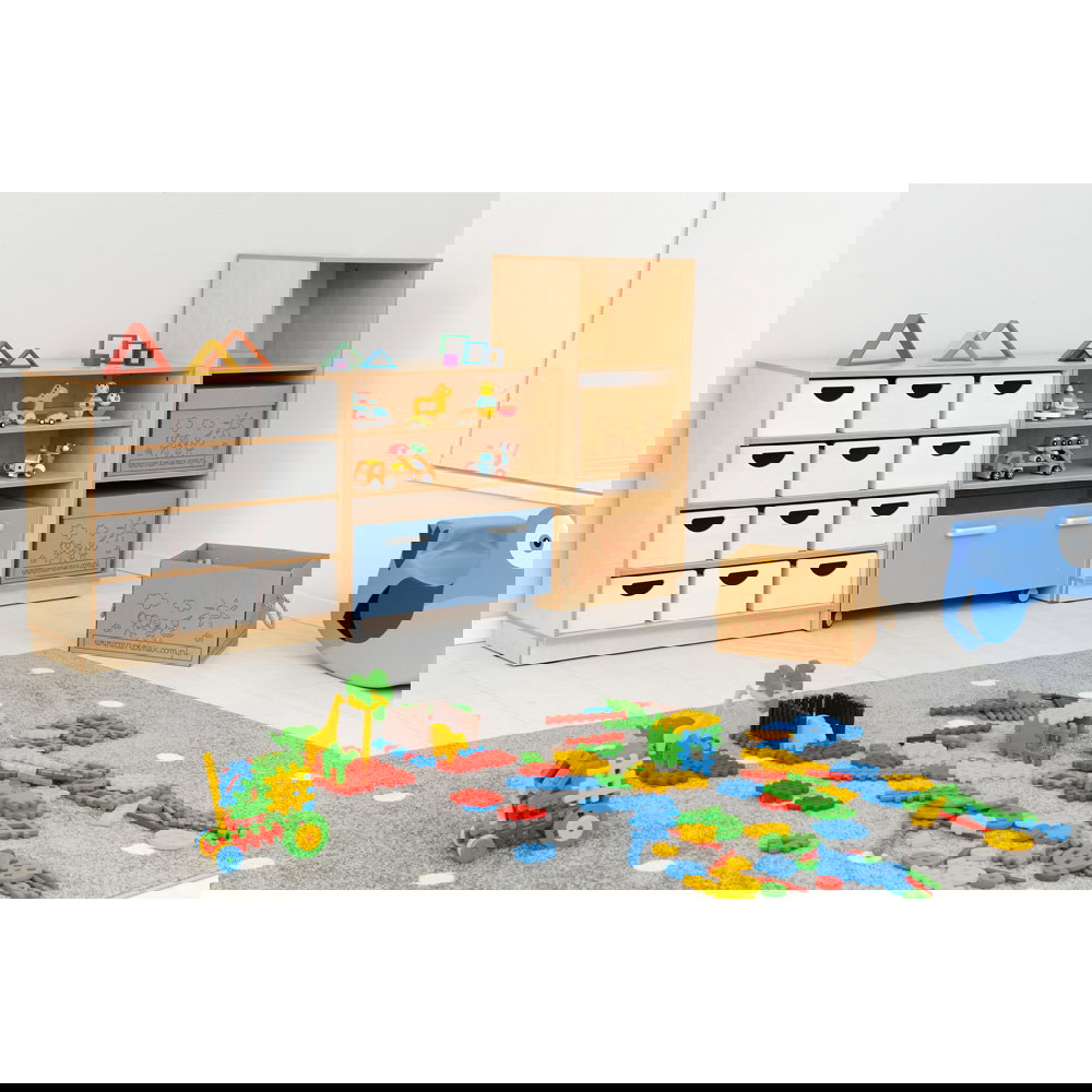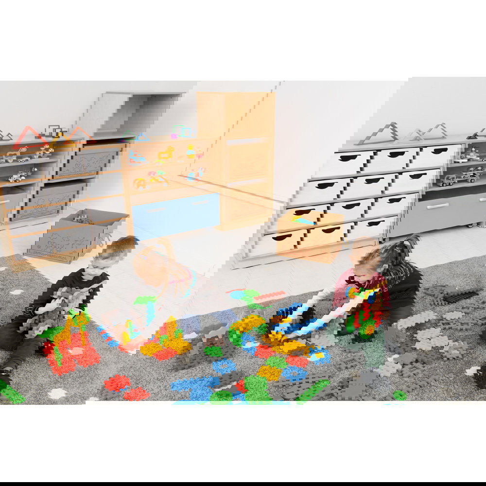 Flexi Schrank inkl. Waffel-Bausteinen & Boxen. Die perfekte Stauraum-Lösung für Kita & Krippe. Fördert Motorik & Kreativität. Wahlweise ab 2 oder 3 Jahren.