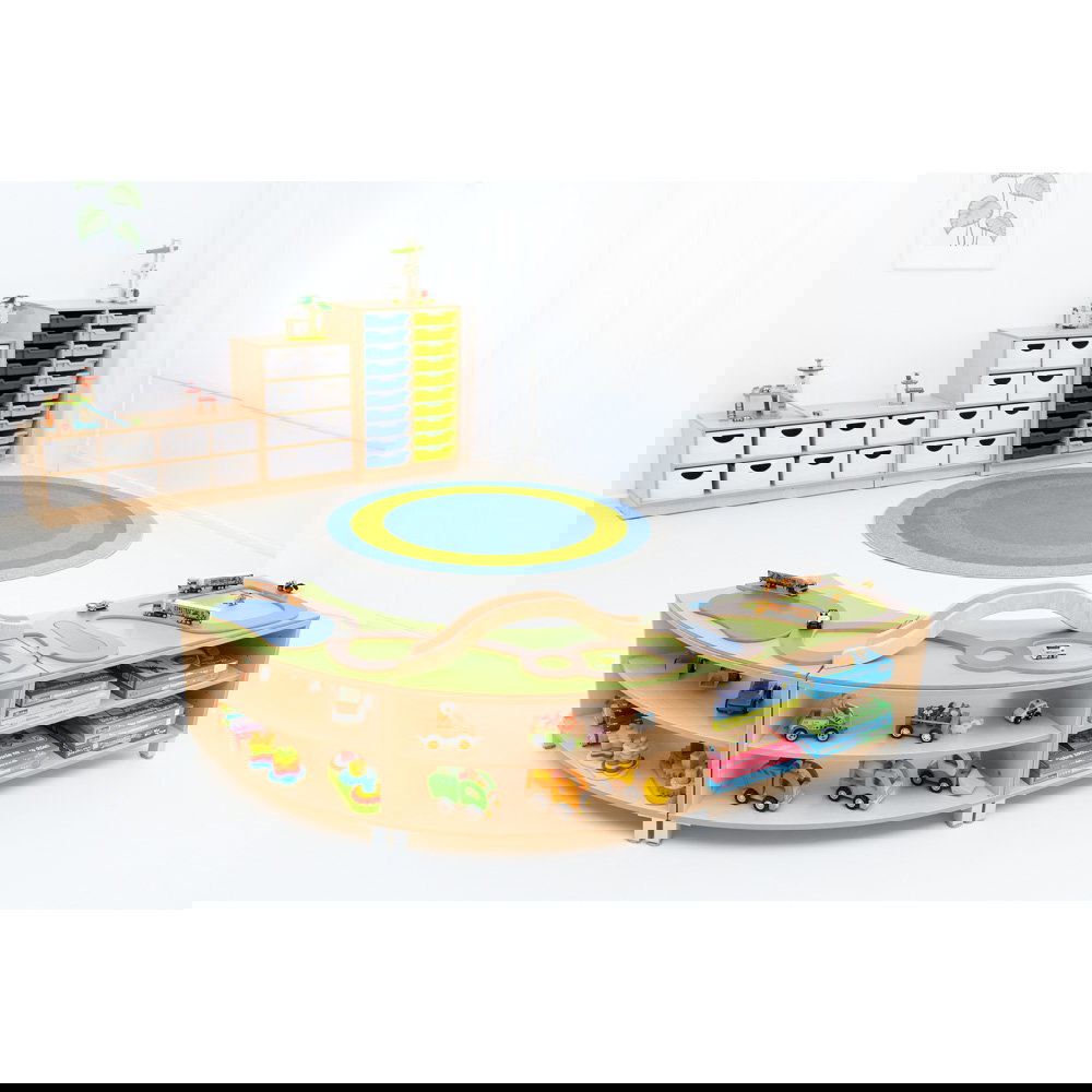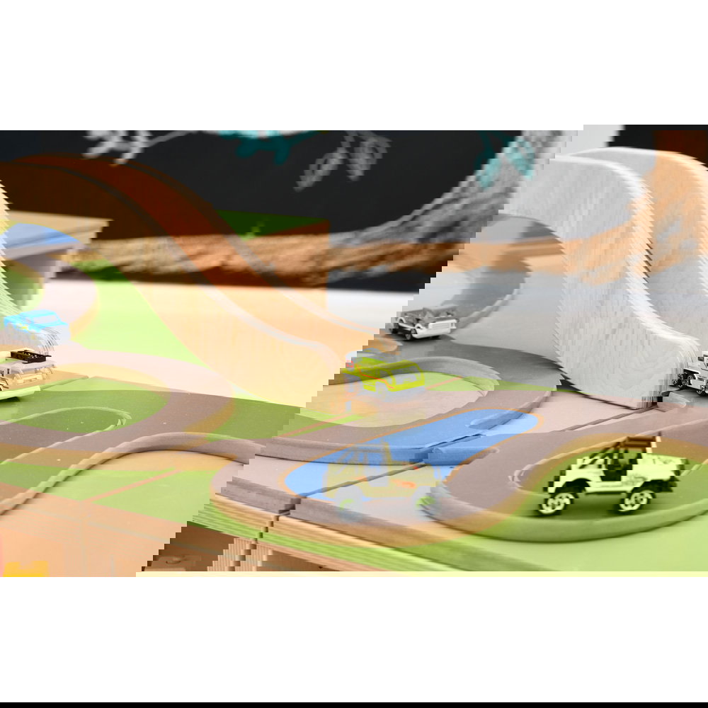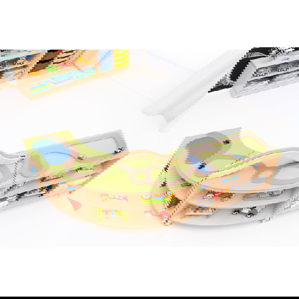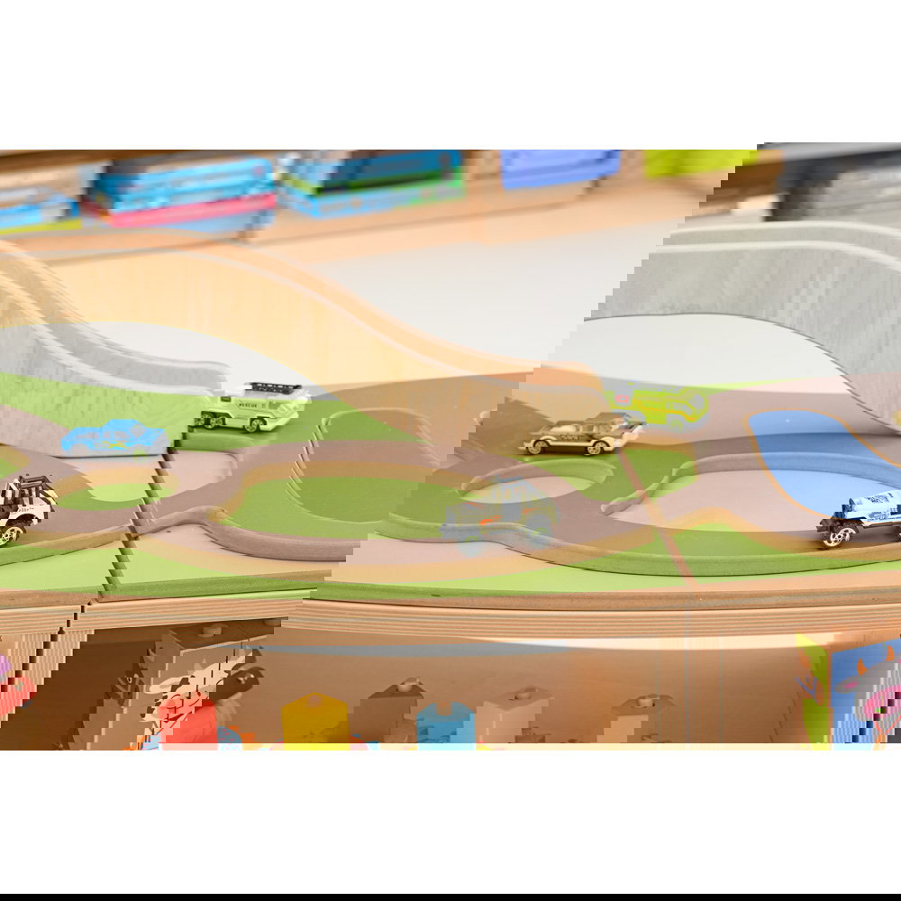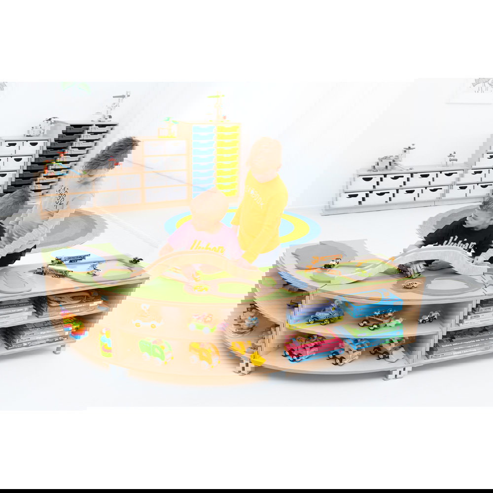 - Zwei Funktionen in einem Möbel: Oben befindet sich eine großzügige, spannende Spiellandschaft mit integrierter Straßenführung und Brücke. Unten bietet das Möbelstück enormen Stauraum für Autos, Puppen und weitere Spielsachen.
