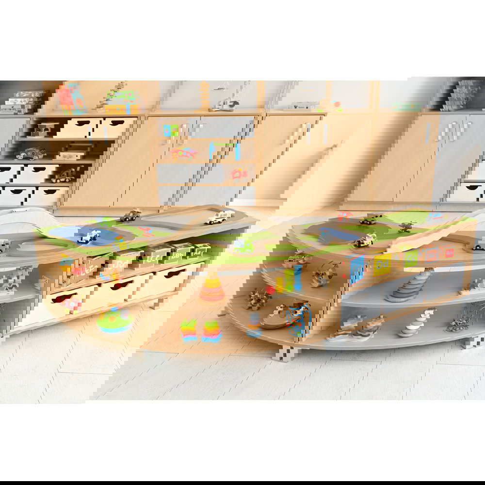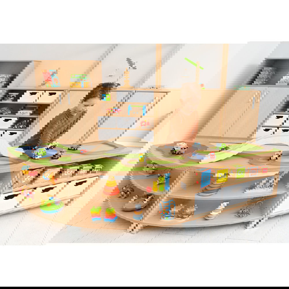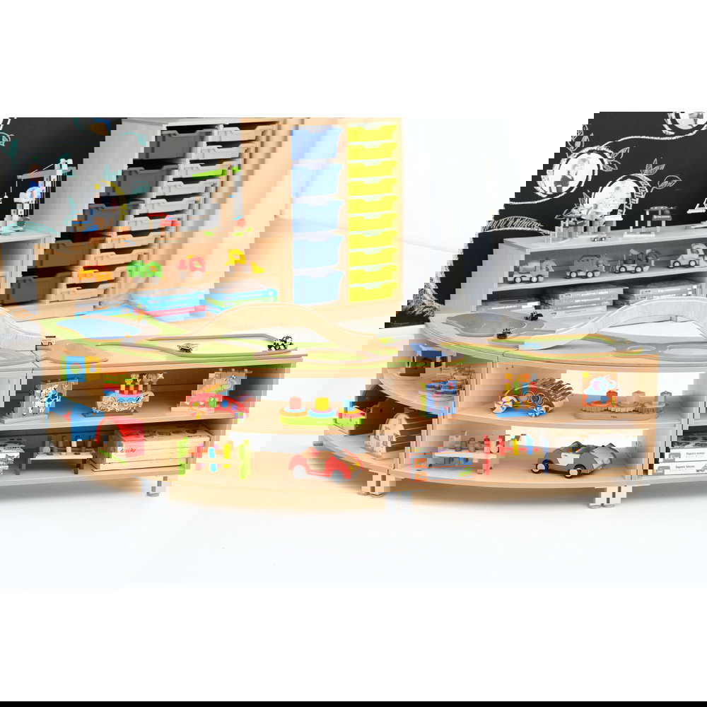 Wir wissen, dass Funktionalität und eine klare Struktur im pädagogischen Alltag oder im heimischen Kinderzimmer an erster Stelle stehen. Deshalb bietet Ihnen diese Spiellandschaft durchdachte Eigenschaften, die Spielen und Aufräumen perfekt miteinander verbinden: