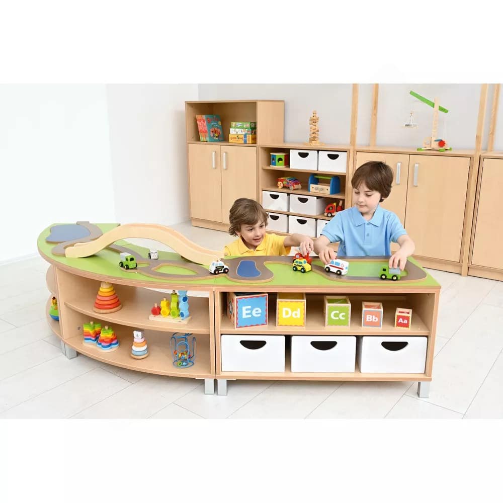 - Hochwertige Materialien Gefertigt aus laminierter Spanplatte in warmem Birke-Dekor mit ABS-Kanten in Multiplex-Optik, verbindet die Spiellandschaft Stabilität mit einer modernen, natürlichen Optik.