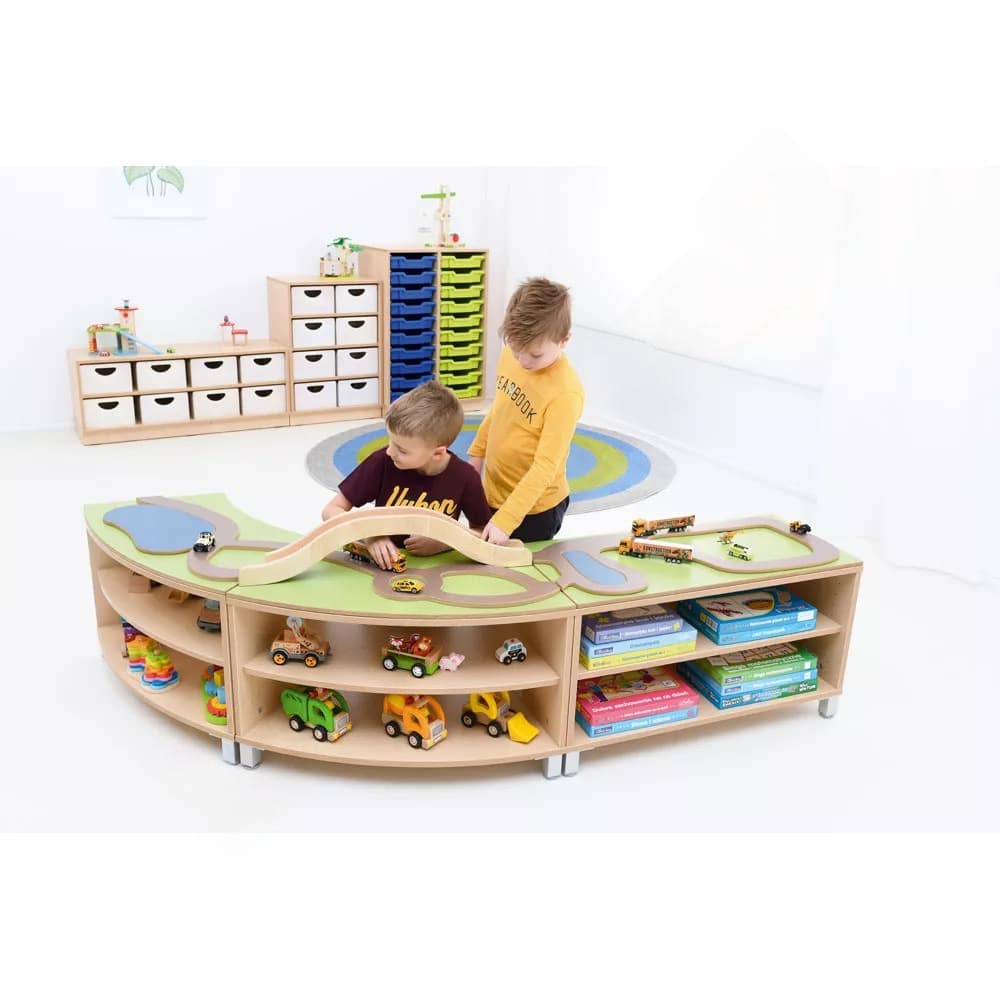 Oben lädt die Spiellandschaft mit integrierter Brücke zum Spielen und Entdecken ein, während unten Schränke und Fächer Platz für Spielzeug, Bücher oder andere Gegenstände bieten. Gefertigt aus langlebigen, pflegeleichten Materialien und ausgestattet mit cleverem Design, bringt die Flexi Spiellandschaft Stil, Funktionalität und Spaß in jedes Kinderzimmer oder jeden Gruppenraum.