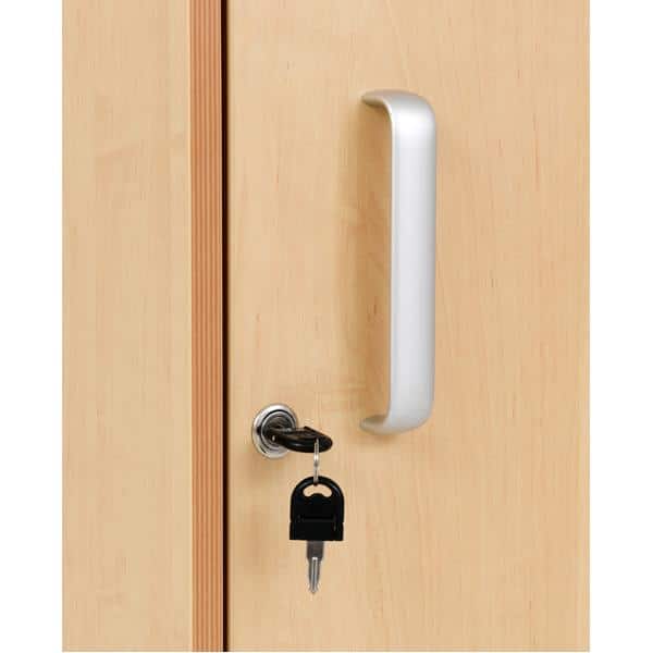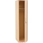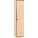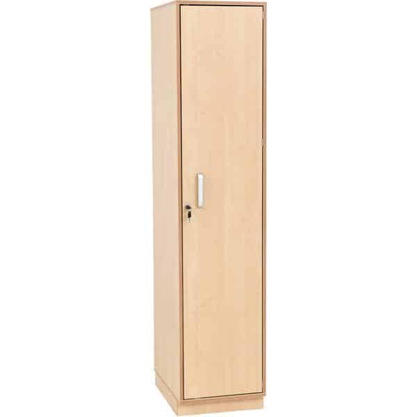 Spindschrank aus laminierter Spanplatte (Stärke: 18 mm) in Birke-Dekor, mit ABS-Kante (Stärke 2 mm) in Multiplex-Optik.