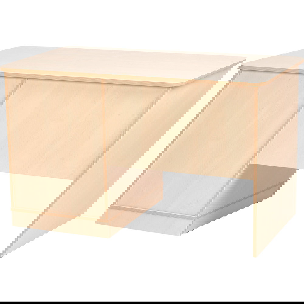 Sicherheitsmöbel müssen nicht steril wirken. Das freundliche Ahorn-Dekor schafft eine warme, einladende Arbeitsatmosphäre. Die Kanten in Multiplex-Optik setzen nicht nur einen modernen Akzent, sondern sind dank robuster ABS-Verarbeitung auch besonders stoßfest und langlebig, was im turbulenten Kita-Alltag entscheidend ist.