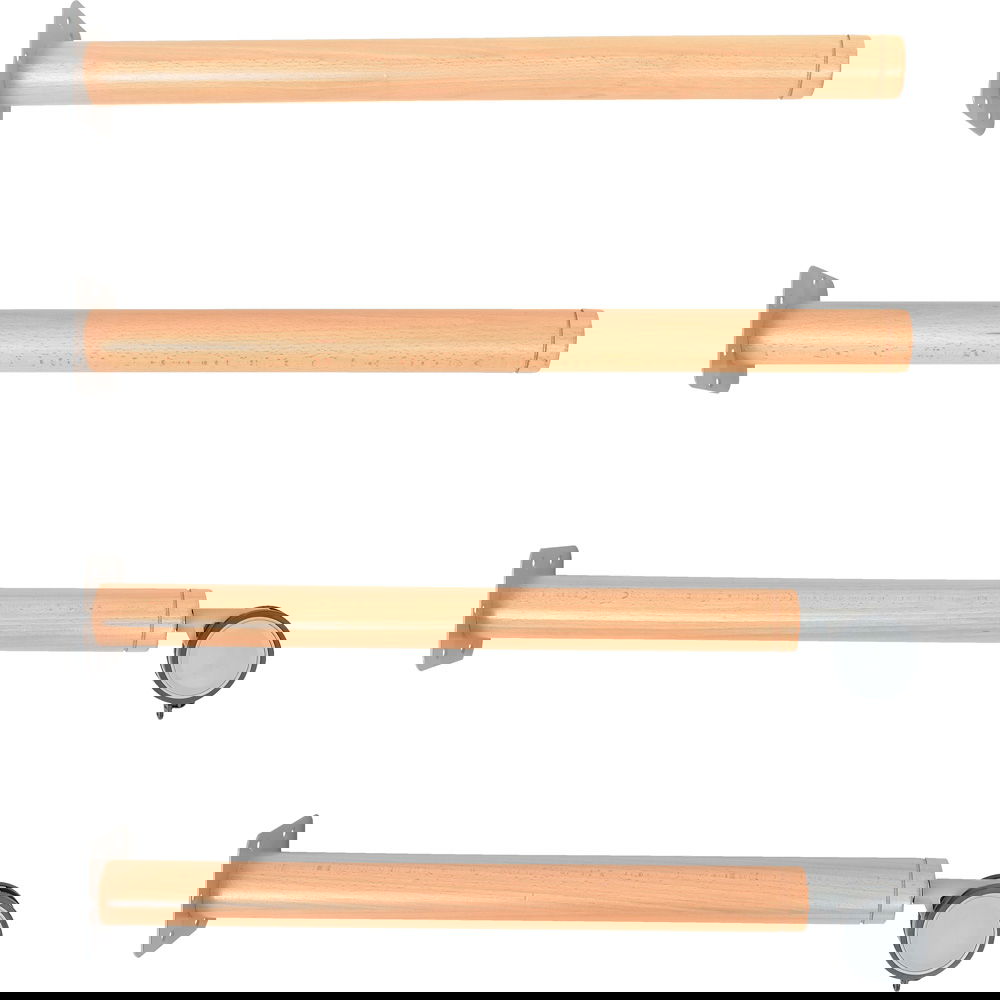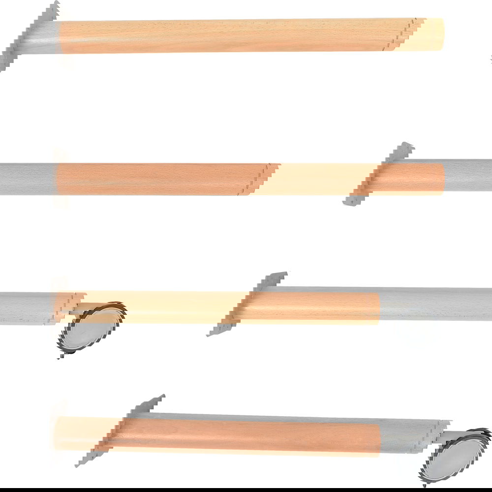 Die Kombination aus massiver Buche und hochwertigen Metall- und Kunststoffkomponenten bei den Rollen garantiert eine lange Lebensdauer. Die Beine sind fest mit der Tischplatte verschraubbar und halten auch intensiver Beanspruchung stand.