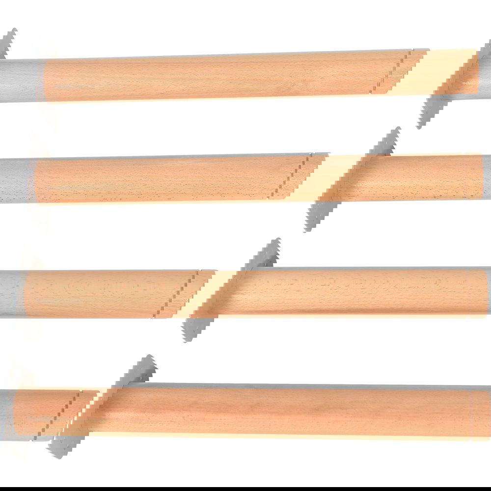 Holz ist ein Naturmaterial, das Robustheit mit Ästhetik verbindet. Die massive Buche mit 55 mm Durchmesser hält den täglichen Belastungen in stark frequentierten Räumen mühelos stand und bietet eine Standfestigkeit, die Vertrauen schafft. - Gesundes Lernumfeld