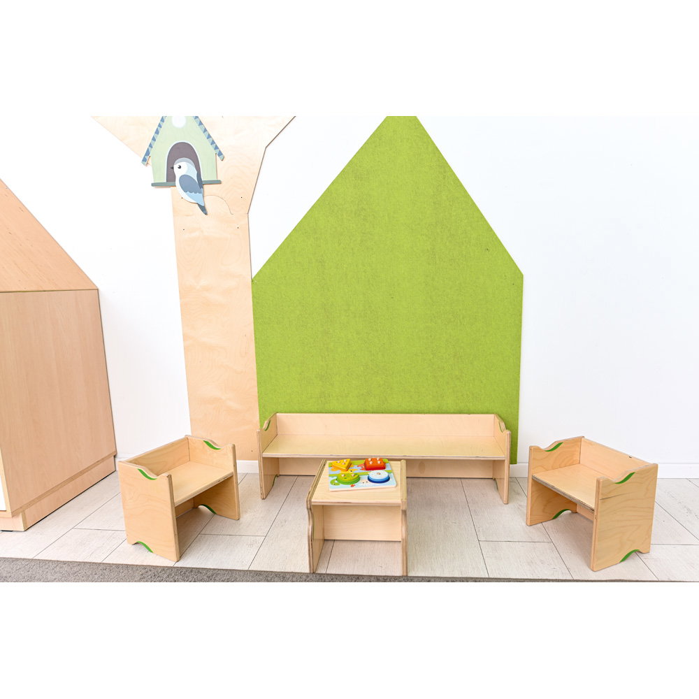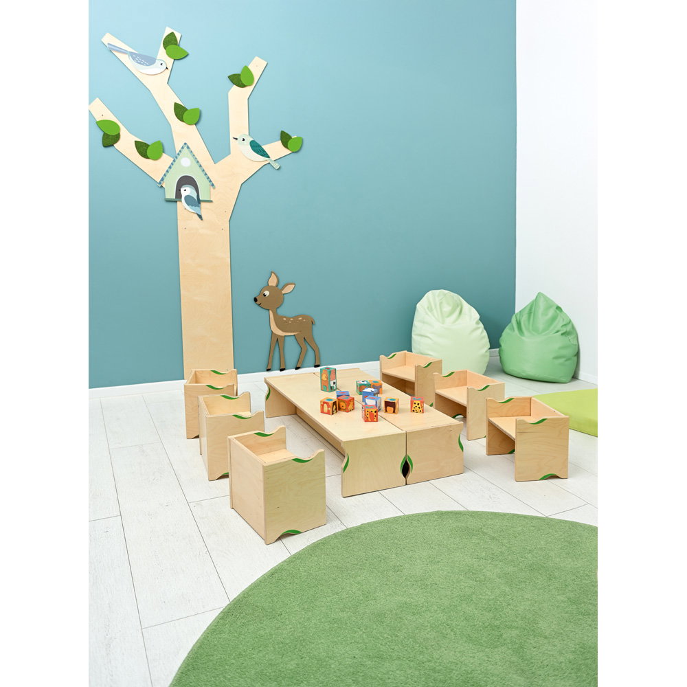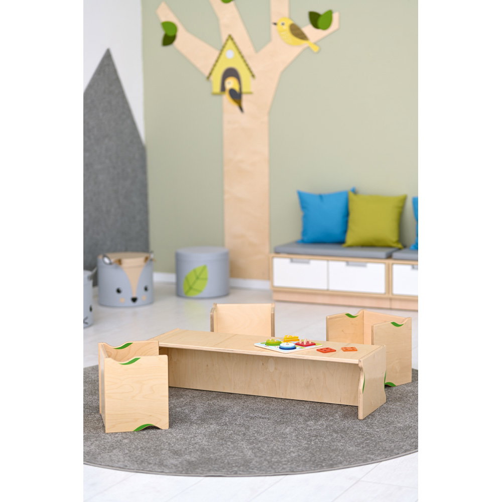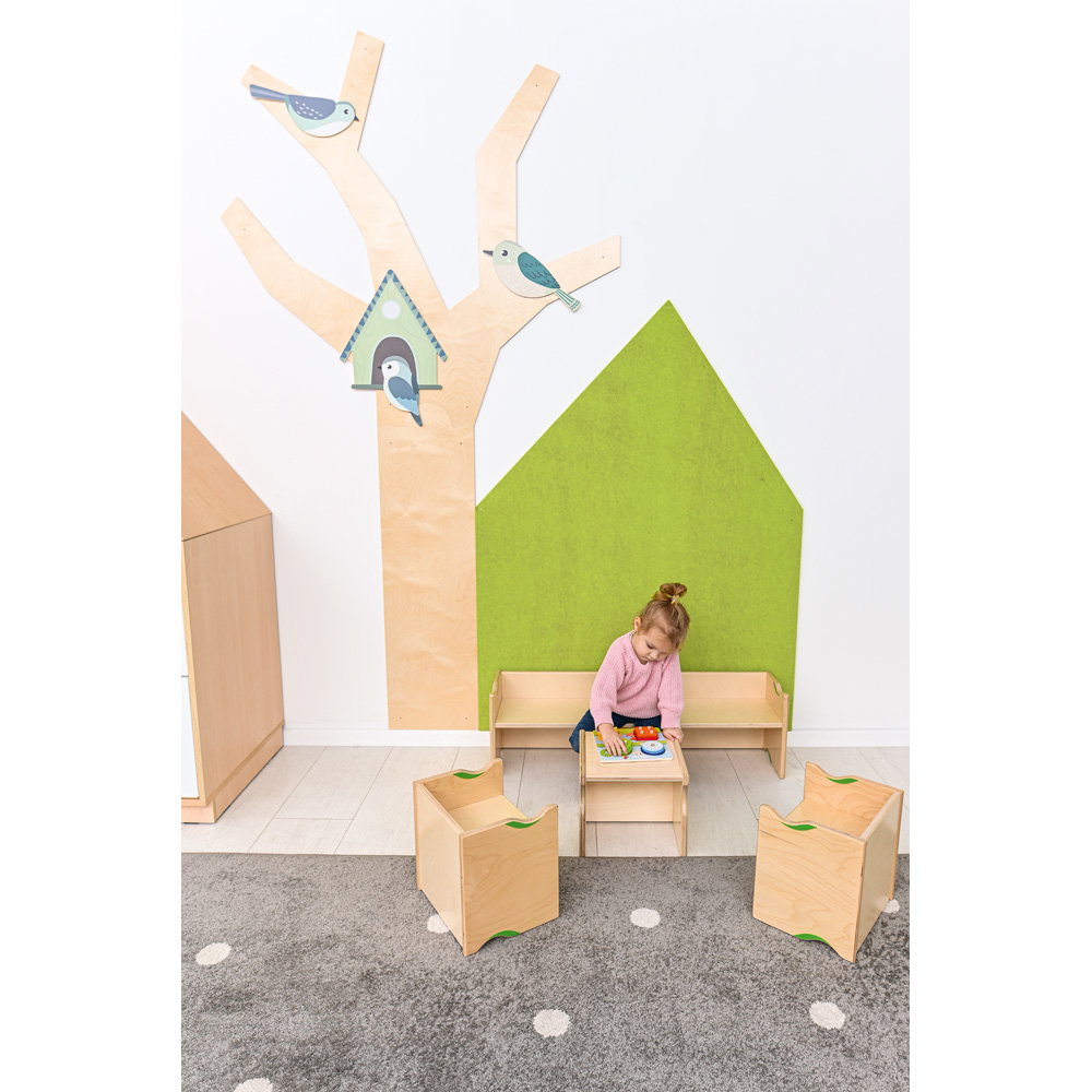 Gefertigt aus robustem, 18 mm starkem Birkensperrholz, ist dieses Möbelstück ein langlebiger Begleiter für den Alltag in Krippe, Kindergarten oder Zuhause. Mit einer Breite von einem Meter schafft die Bank Raum für Gemeinschaft – sei es beim Anziehen der Schuhe im Flur, beim gemeinsamen Bilderbuch-Schauen oder als langer Maltisch, an dem große Kunstwerke entstehen können. Das zeitlose Design mit den sanft abgerundeten Kanten fügt sich harmonisch in jede Umgebung ein und bietet Kindern dabei stets maximale Sicherheit.