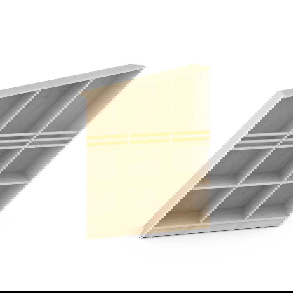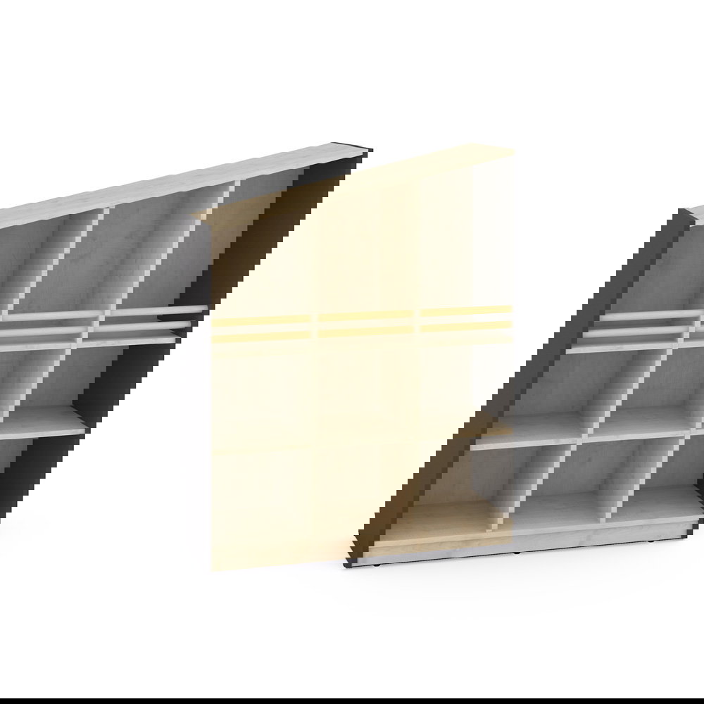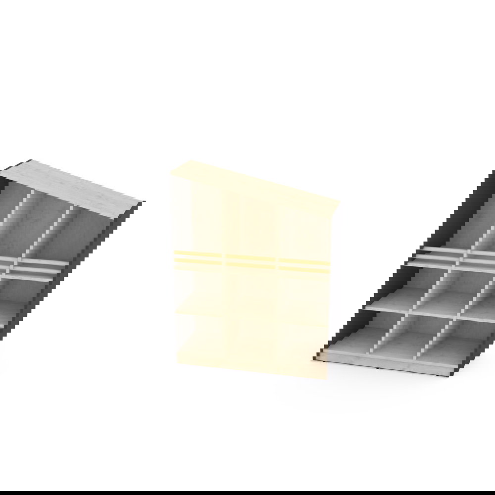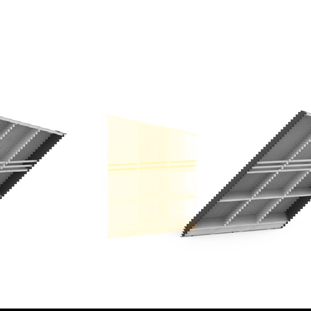 Der Schrank passt sich Ihren Bedürfnissen an. Die großzügigen unteren Fächer bieten viel Volumen und können optional mit separat erhältlichen Türen oder Schubladen ergänzt werden. So entscheiden Sie selbst, was offen sichtbar bleibt und was diskret verschwinden soll. - Spielerische Modularität