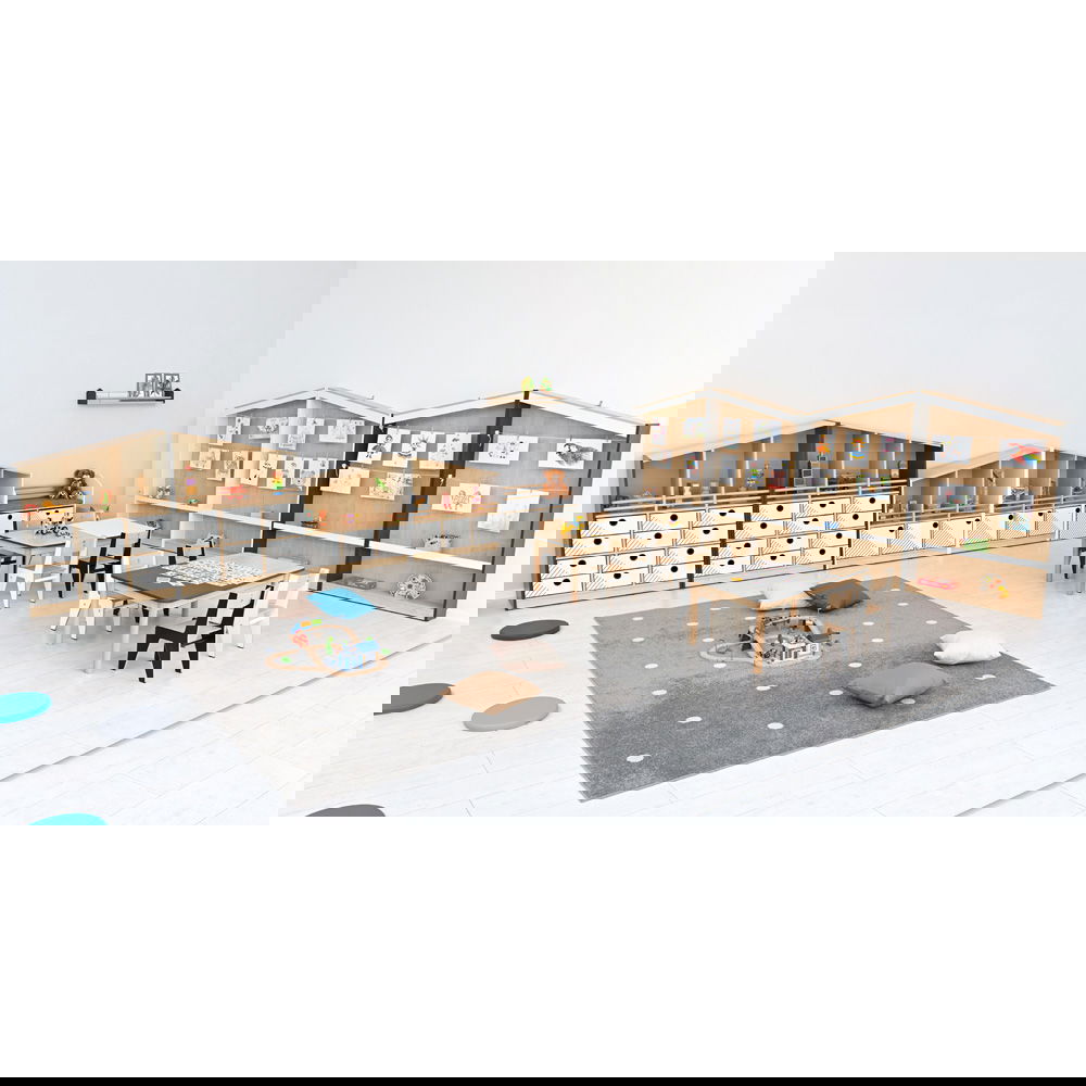 Trotz seiner beeindruckenden Größe nimmt das Regal mit einer Tiefe von nur 20 cm kaum Bodenfläche in Anspruch. Es ist ideal für Flure, Gruppenräume oder schmale Wandbereiche, die sinnvoll und attraktiv genutzt werden sollen. - Sichere und stabile Konstruktion
