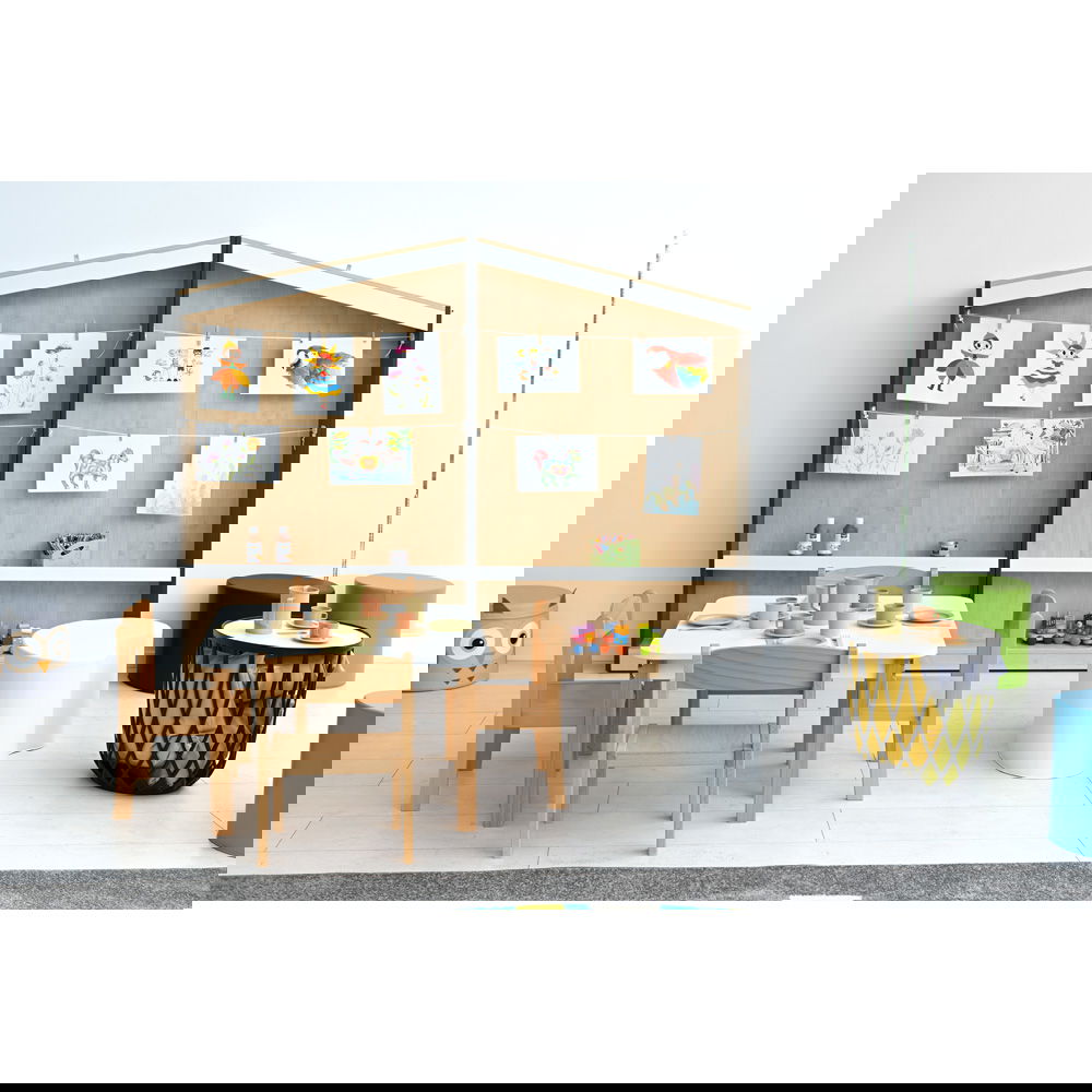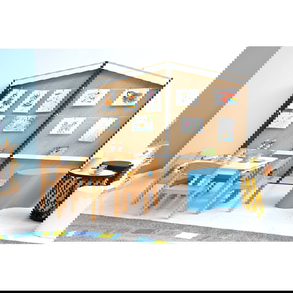 Ob als „Ruhmeswand“ für die besten Zeichnungen, als Infoboard für Eltern im Kindergarten oder als saisonale Dekorationsfläche – die flexible Gestaltung mit Schnüren und Ablageboden passt sich jedem Bedarf an. - Platzsparendes Design