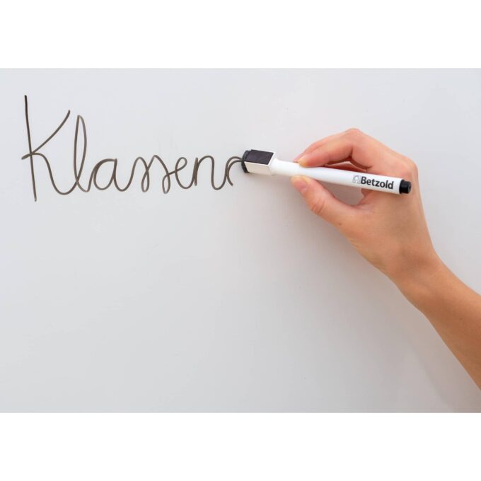 Der Betzold Folienstift bietet Ihnen eine herausragende Vielseitigkeit. Mit einem integrierten Filzwischer und einem Magneten an der Kappe ausgestattet, kann dieser Stift auf nahezu allen beschreibbaren Oberflächen verwendet werden. Egal, ob Sie auf einem Whiteboard arbeiten oder Ihre Ideen auf laminierten Arbeitsblättern festhalten – der Folienstift lässt sich mühelos abwischen, wodurch er erneut verwendet werden kann.