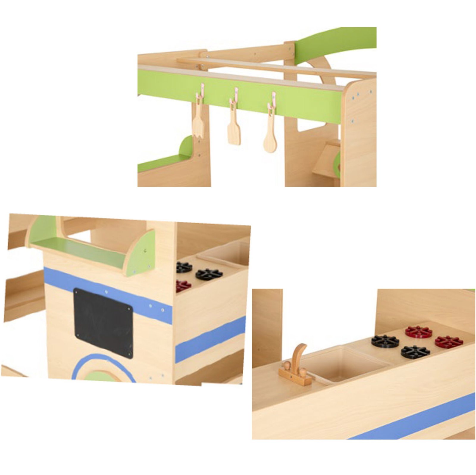 Welches Menü gibt es heute? Pizza, Eis oder doch ein Fünf-Gänge-Menü aus Bauklötzen? Die integrierte Kreidetafel lässt sich immer wieder neu mit Angeboten beschriften und bemalen. Die Kinder entwickeln eigene Spielszenarien, denken sich Geschichten aus und ahmen den Alltag der Erwachsenen nach. Dieses freie, kreative Spiel ist ein fundamentaler Baustein für die kognitive Entwicklung und die Problemlösefähigkeit. - Spielerisches Lernen von Alltags- und Wirtschaftskompetenzen
