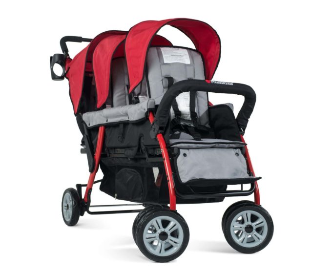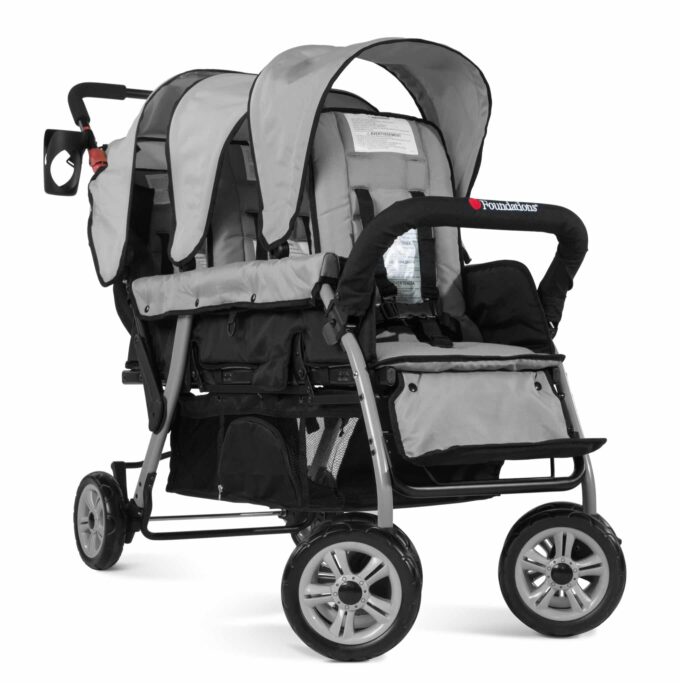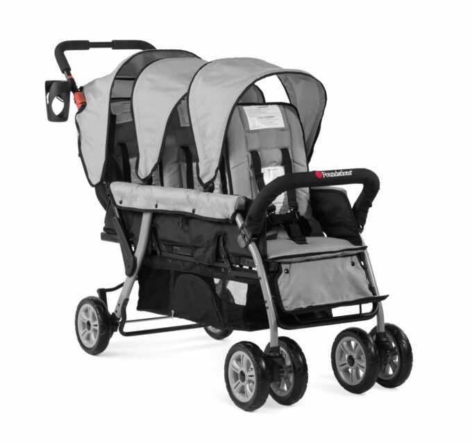 Überdachungen schützen vor schlechtem Wetter und UV-Strahlen und ermöglichen eine genußvolle Fahrt im Freien. Der Kinderwagen für Kindergärten ist leicht zu manövrieren, bequem zu parken und lässt sich zusammenklappen, um weniger Platz zu beanspruchen.