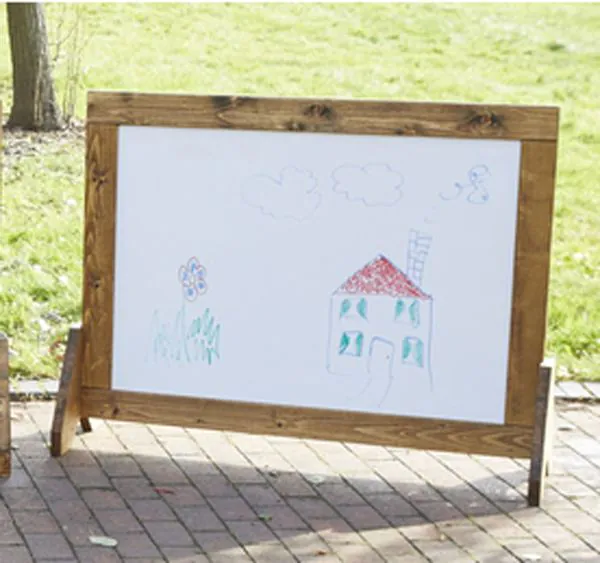 Die stabilen Holzrahmen sorgen für einen sicheren Stand, sind aber dennoch leicht genug, um von Erwachsenen mühelos umgestellt zu werden. So wandert das Kunstatelier dorthin, wo es gerade gebraucht wird – ob drinnen oder in einem geschützten Außenbereich.
