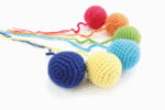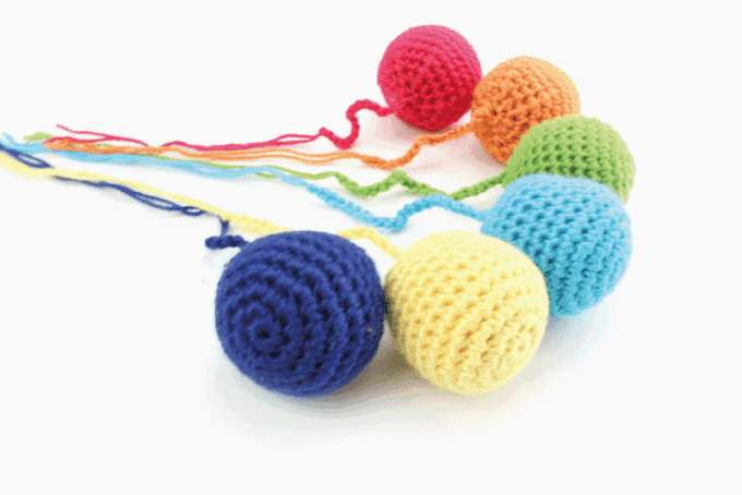 - 6 handgefertigte Bälle aus Wolle in einem Aufbewahrungskorb