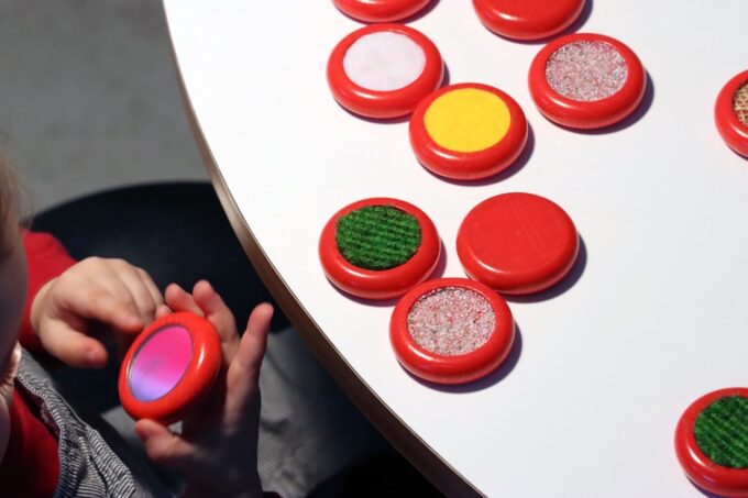 Besonders spannend wird das Tasterlebnis, wenn die Kinder die Augen schließen. So werden nicht nur die Tastsinne geschärft, sondern Gedächtnis und Vorstellungsvermögen zusätzlich gefördert. Die Fühl-Scheiben bieten also nicht nur abwechslungsreiche Spielelemente, sondern auch viel Raum für kreative und interaktive Lernprozesse.