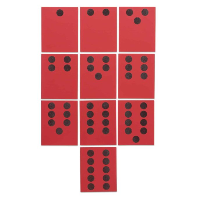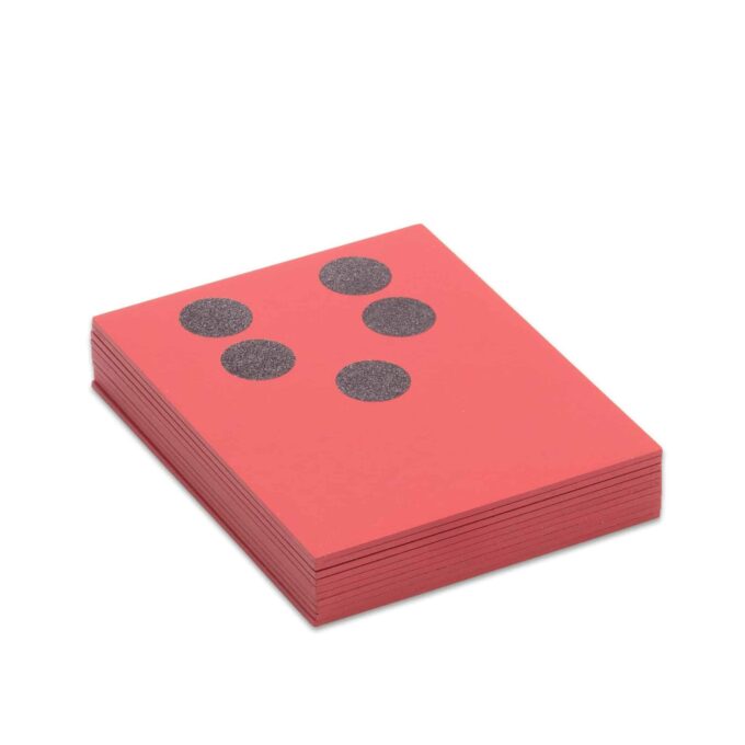Die Fühl- und Tastplatten sind speziell gestaltet, um Kindern eine anschauliche und haptische Erfahrung zu bieten. Jede Platte zeigt eine bestimmte Menge in Form von großen Punkten, die Kinder zählen und ertasten können. Durch das Fühlen der Punkte und das Vergleichen der verschiedenen Mengen entwickeln die Kinder schnell eine klare Vorstellung von Zahlen und deren Werten. Diese konkrete Mengenerfahrung ist besonders wirksam, um das Verständnis für mathematische Konzepte zu fördern.