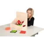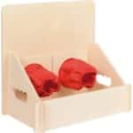 Die Handhabung ist denkbar einfach und genial zugleich: Durch eine unauffällige Öffnung auf der Rückseite werden verschiedene Gegenstände im Kasten platziert – von Naturmaterialien wie Tannenzapfen und Steinen bis hin zu Alltagsgegenständen oder geometrischen Formen. Die Kinder stecken ihre Hände durch die beiden vorderen Öffnungen mit weichen Stoffmanschetten und versuchen, nur durch Ertasten die verborgenen Objekte zu identifizieren. Die hohe Vorderseite dient dabei als cleverer Sichtschutz, der neugierige Blicke fernhält und für ein faires, spannendes Spielerlebnis sorgt.
