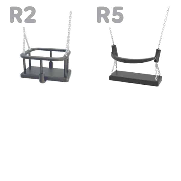 - verfügbare Arten von Sitzen in der Schaukel: R1-flach, R2-Korb, R3-Flachgurt, R5-flach mit Barriere;