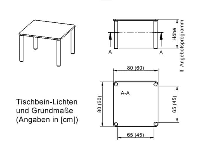 Verfügbare Tischhöhen