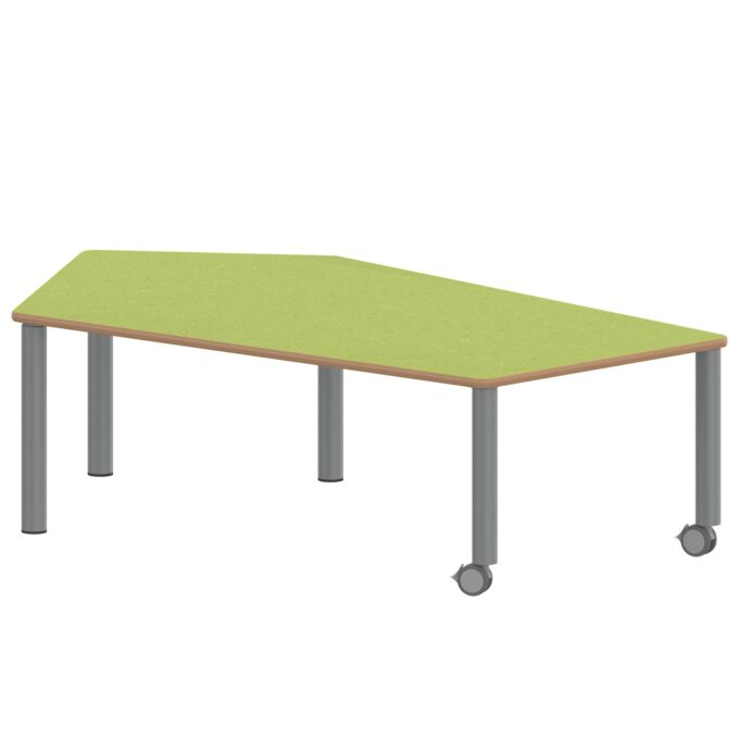 Fünfecktisch ZALOTTI mit Linoleum fahrbar – Mobile Revolution für dynamische Gruppenarbeit