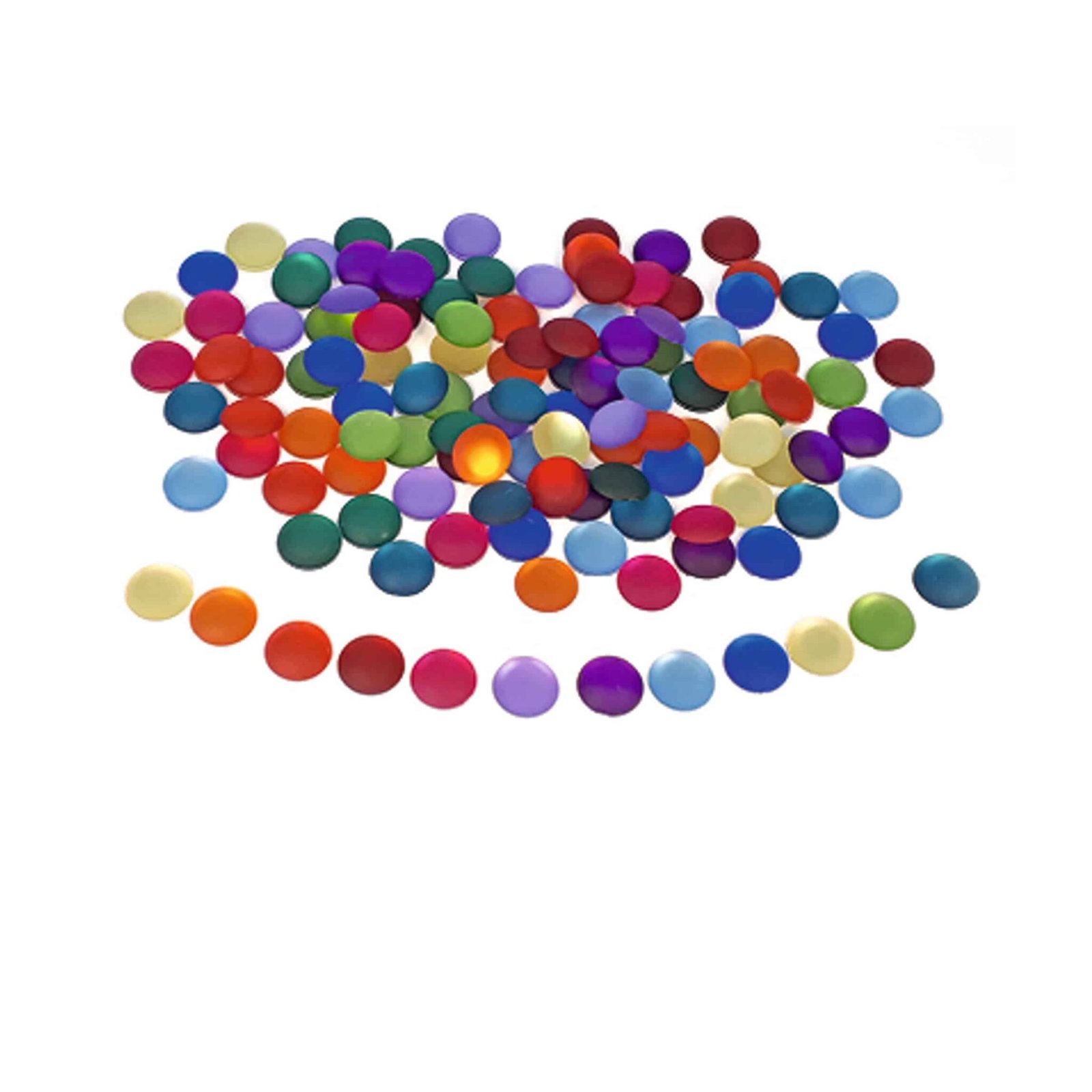 - Art. 3138 – Funkelsteine matt: 120 Teile in 12 sanften Farben, Durchmesser: 2,2 cm.