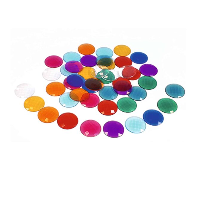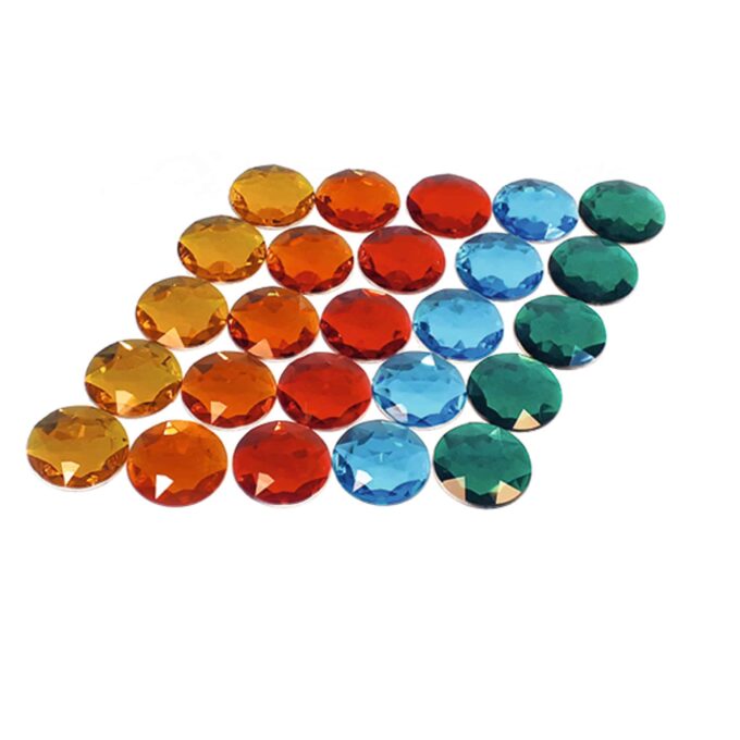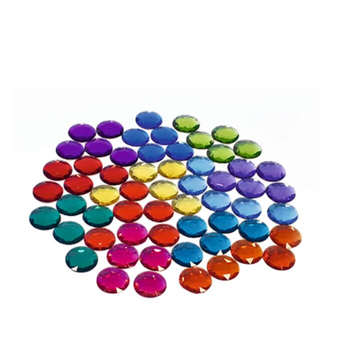 - Art. 3148 – Funkelsteine transparent: 60 Teile in 12 Farben, Durchmesser: 3,5 cm.
