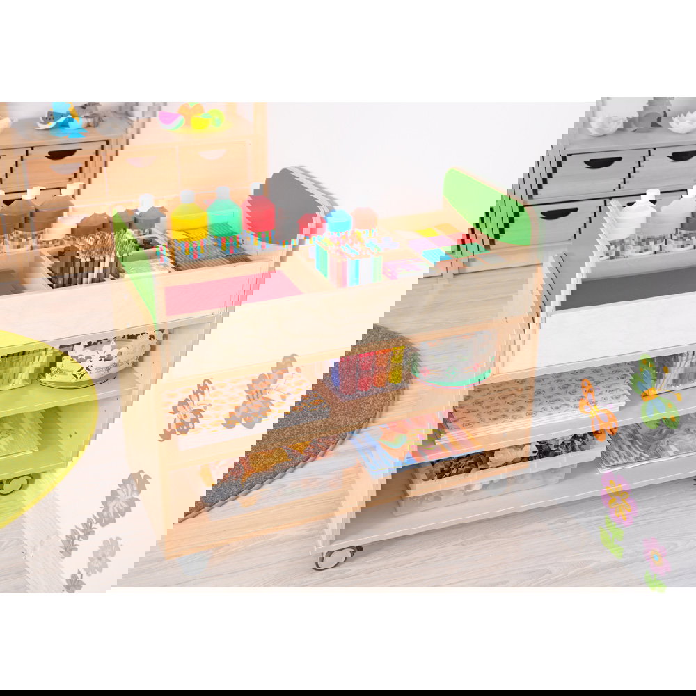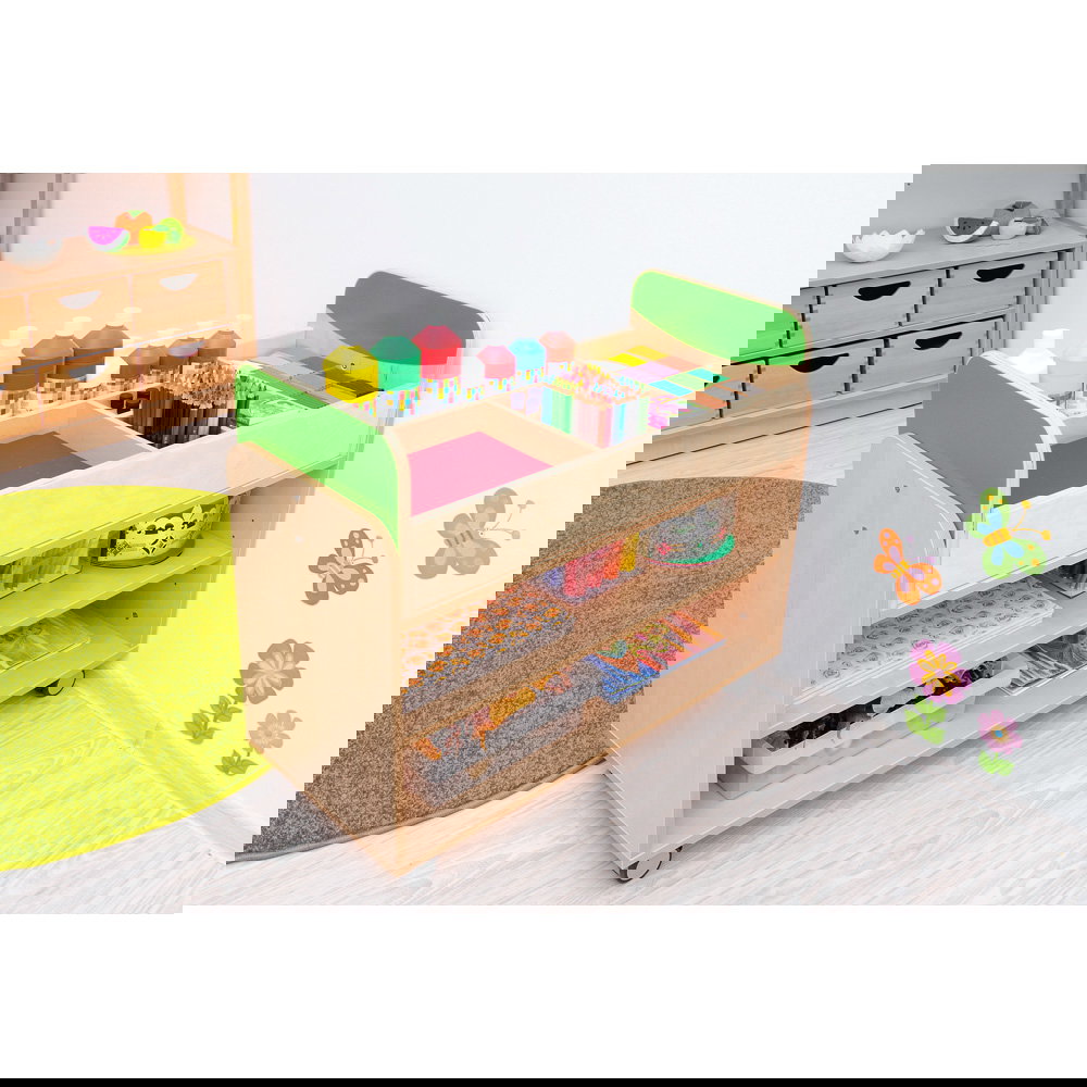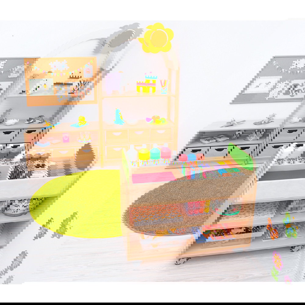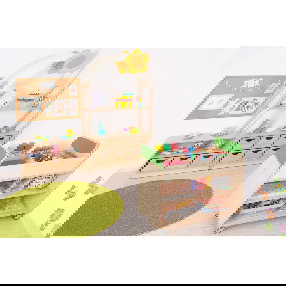 Die integrierten Fächer bieten den idealen Platz zur übersichtlichen Ablage von Bausteinen, Spielfiguren und Bastelutensilien. - Flexible und nachhaltige Raumgestaltung