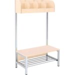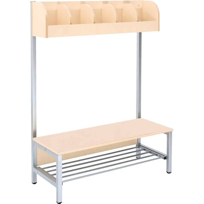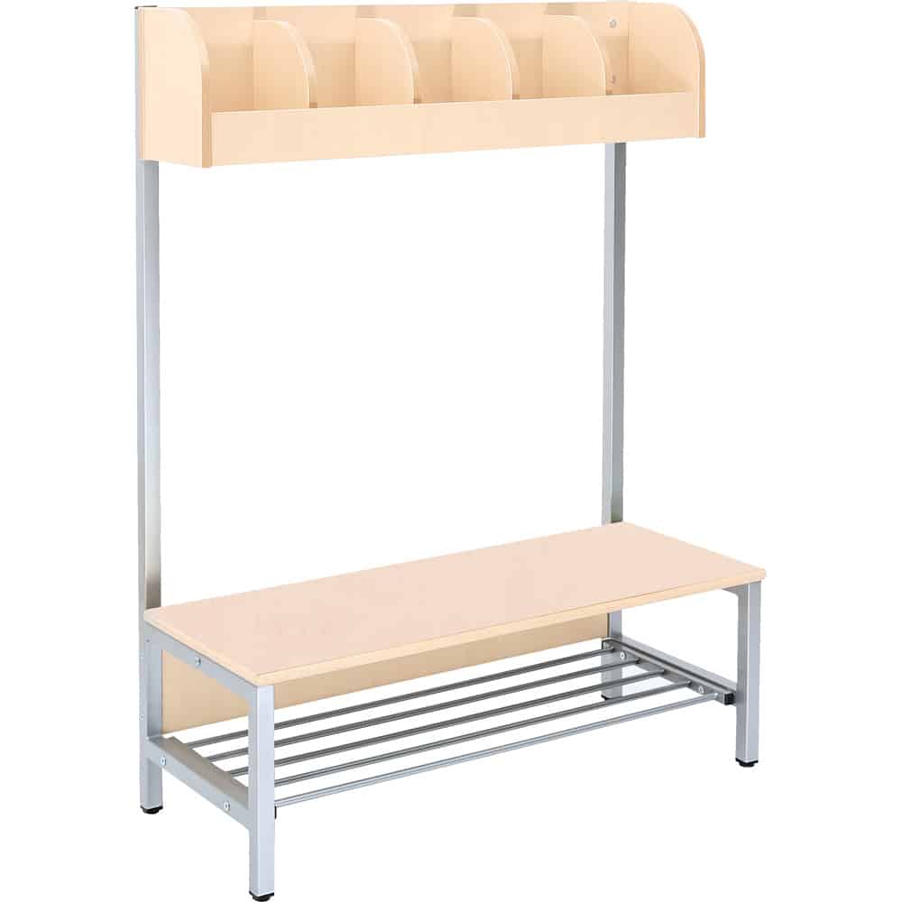 Die Fachbreite von 18 cm bietet genügend Platz für Jacken, Taschen und mehr. Jedes Fach ist mit einer Schuhablage, die anstandslos für Ordnung sorgt, und einem Abstand zur Sitzfläche von 16,5 cm ausgestattet. Die Querleiste ermöglicht das Anbringen von Namens- oder Symbolschildern, um die Nutzung besonders benutzerfreundlich zu gestalten.