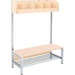 Die Garderobe kommt mit einer stabilen Metallgestell, das für zusätzliche Haltbarkeit sorgt. Sie kann an der Wand montiert oder flexibel Rücken an Rücken aufgestellt werden – ganz nach Ihren Bedürfnissen! Wählen Sie zwischen verschiedenen Sitzhöhen von 26 cm oder 35 cm und Gesamthöhen von 122 cm oder 131 cm.