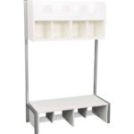 Bringen Sie Ordnung in das Kinderzimmer oder den Kindergarten mit der flexiblen Garderobe Quadro! Diese schmal gehaltene, platzsparende Garderobe ist ideal für 4 oder 6 Kinder und kombiniert Funktionalität mit ansprechendem Design. Das stabile Metallgestell sorgt für eine hohe Standfestigkeit, während die praktische Schuhablage für Übersicht und Ordnung sorgt.