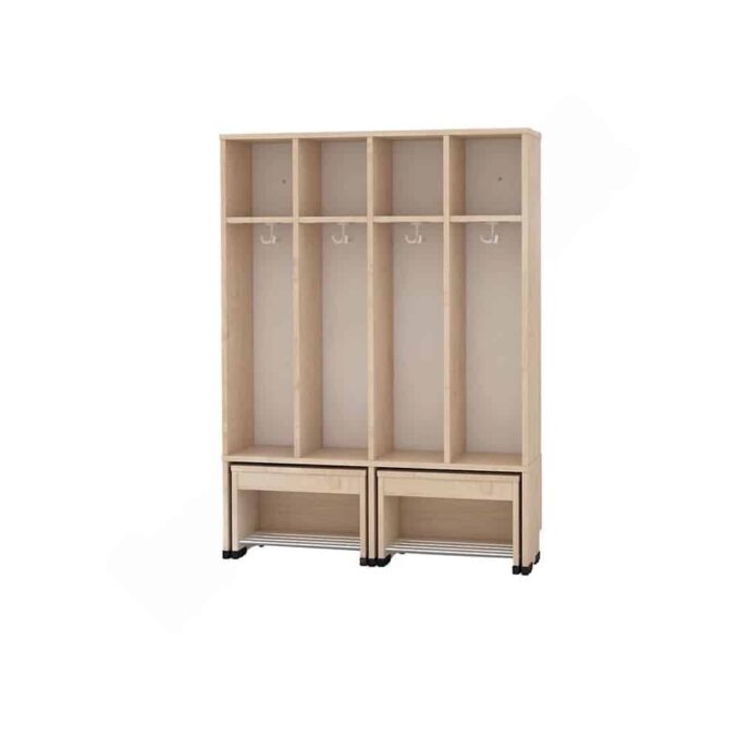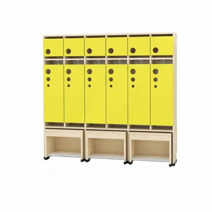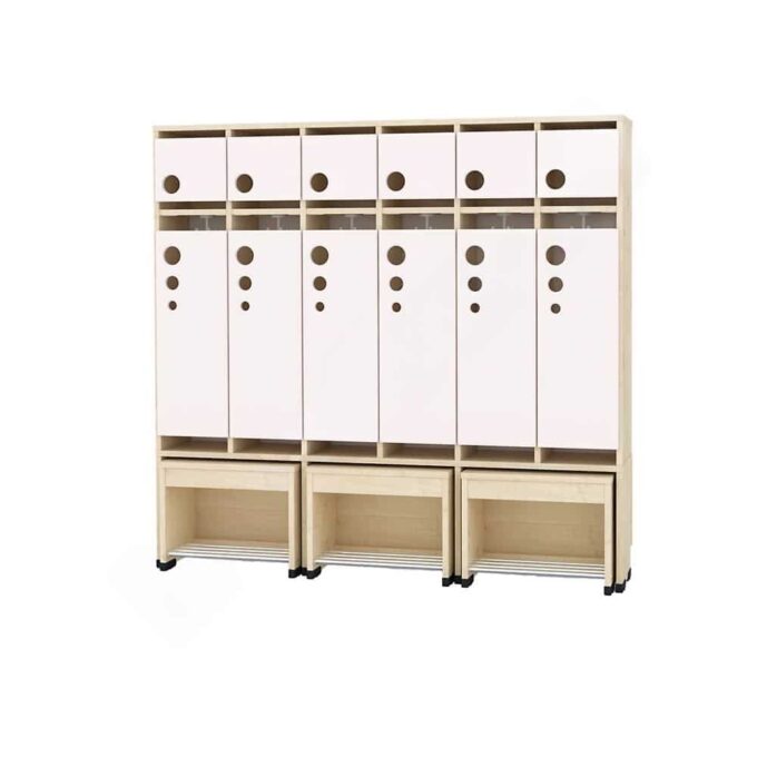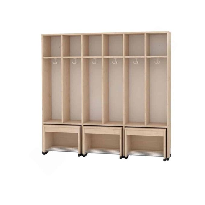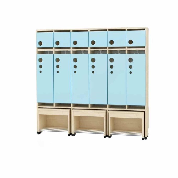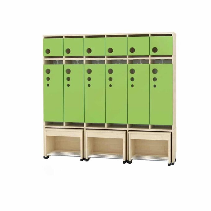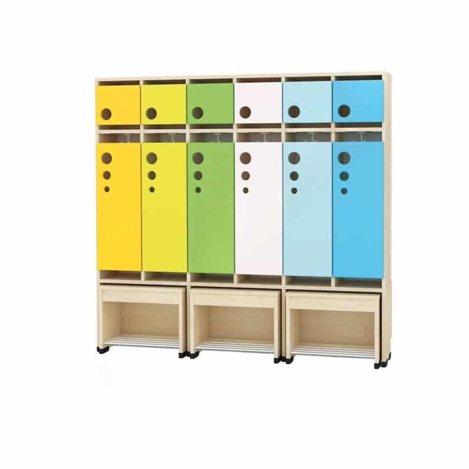 Die Garderobe Tropfen mit ausziehbarer Bank ist die ideale Lösung für Kindergärten, in denen Ordnung und Benutzerfreundlichkeit an erster Stelle stehen. Diese innovative Garderobe vereint praktischen Stauraum mit einer bequemen Sitzgelegenheit und wurde speziell für die Bedürfnisse kleiner Abenteurer entwickelt.