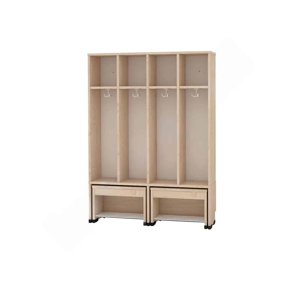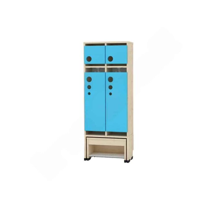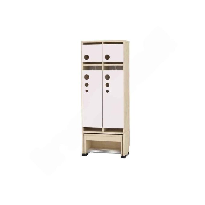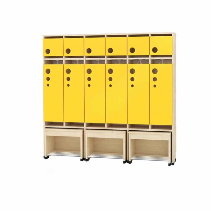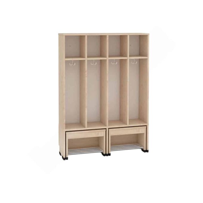 Die Garderobe Tropfen mit ausziehbarer Bank ist die ideale Lösung für Kindergärten, in denen Ordnung und Benutzerfreundlichkeit an erster Stelle stehen. Diese innovative Garderobe vereint praktischen Stauraum mit einer bequemen Sitzgelegenheit und wurde speziell für die Bedürfnisse kleiner Abenteurer entwickelt.