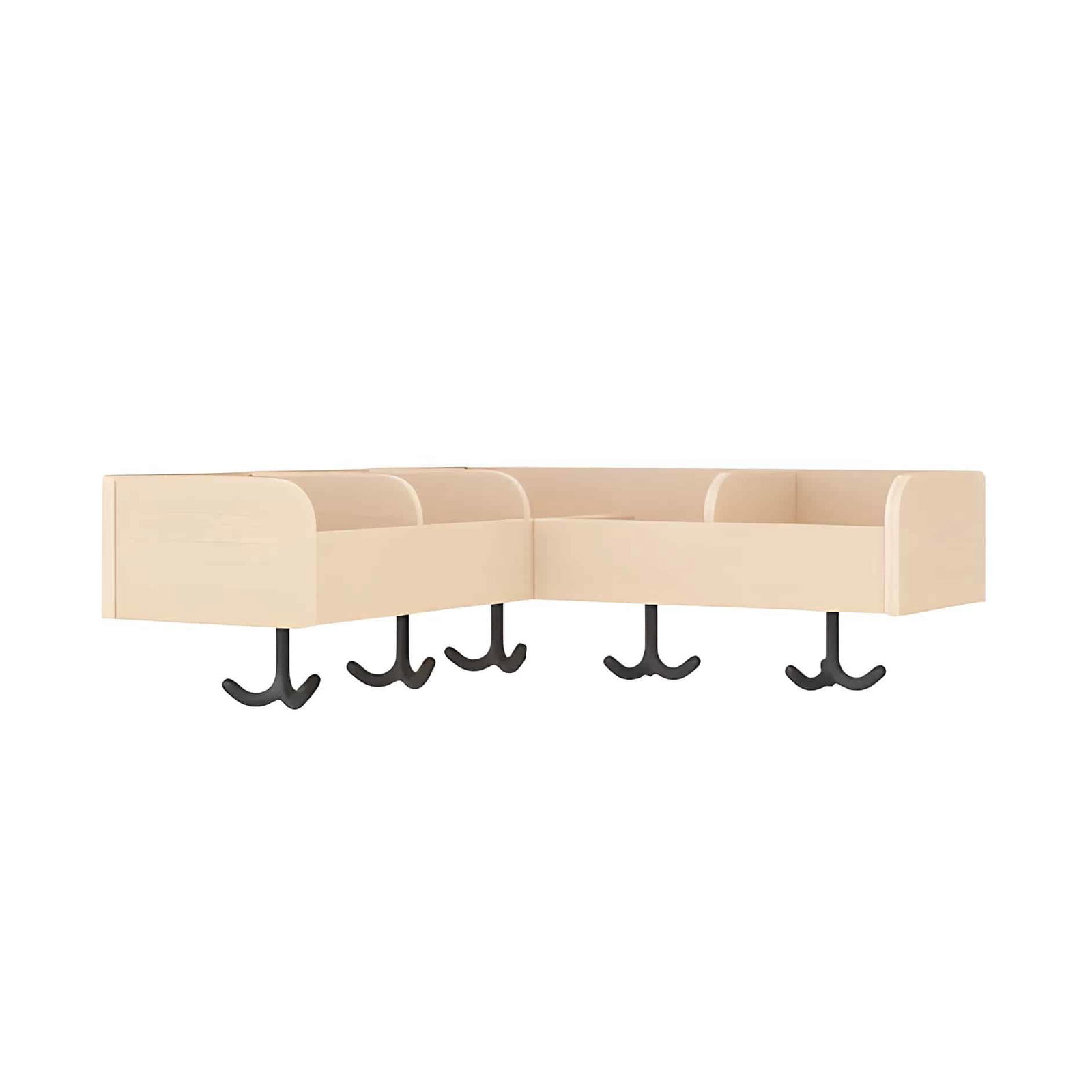 Nutzen Sie jeden Winkel Ihres Raumes optimal und schaffen Sie gleichzeitig eine perfekt organisierte Garderobe mit der Garderoben-Eckablage von WISDOM. Als ideale Ergänzung zu unseren geraden Garderobenablagen wurde dieses Element speziell dafür entwickelt, ungenutzte Ecken in funktionale und strukturierte Bereiche zu verwandeln. Jeder Haken und jedes Fach hilft dabei, Ordnung zu halten und den Kindern ihren eigenen, festen Platz zuzuweisen. Gefertigt aus hochwertigem Schichtholz in einer freundlichen Ahorn-Optik, verbindet diese Ecklösung maximale Stabilität mit einem durchdachten Design, das den Garderobenbereich vervollständigt und für einen nahtlosen, aufgeräumten Gesamteindruck sorgt.