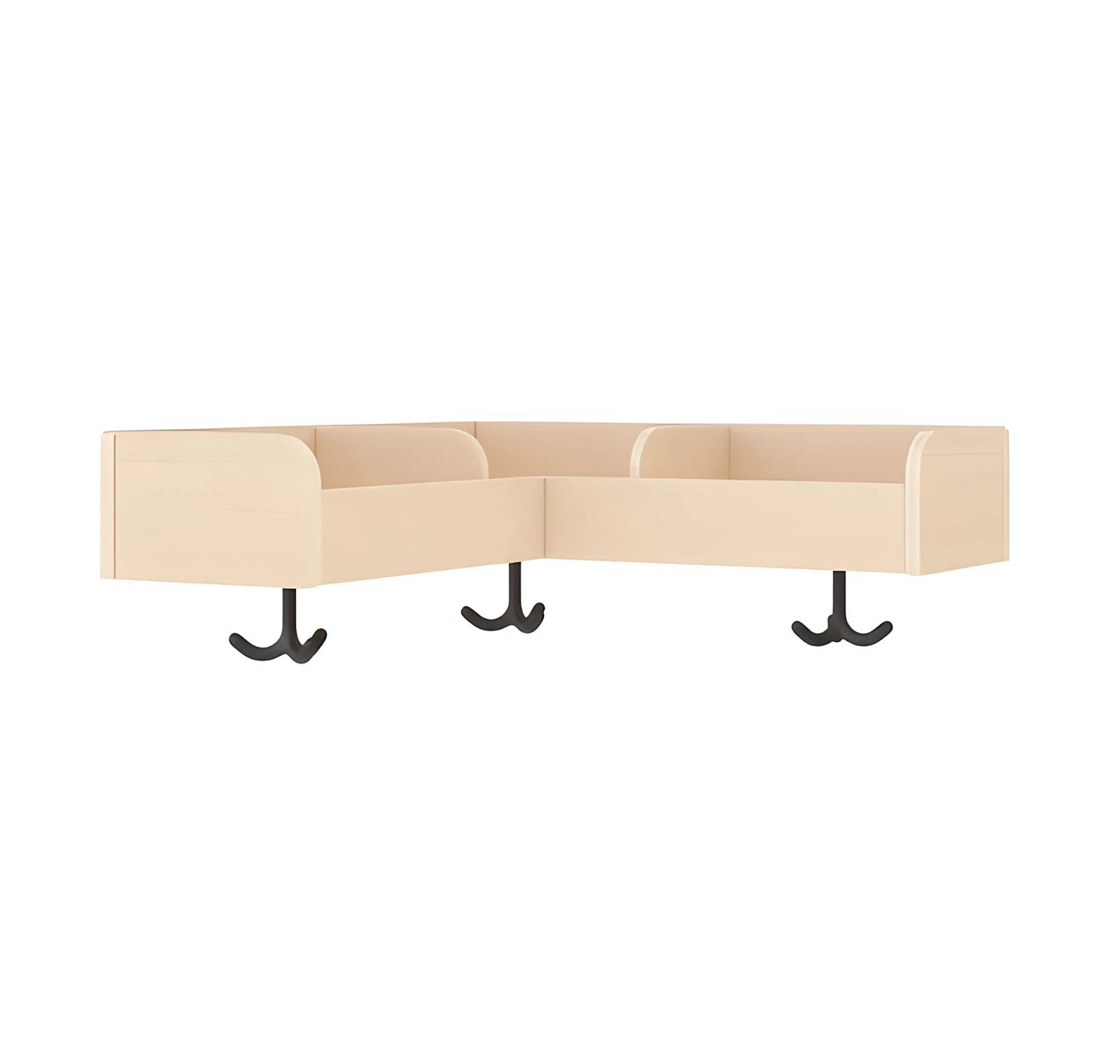 Ecken sind oft ungenutzter oder unordentlicher Raum. Diese Eckablage verwandelt genau diese Bereiche in wertvollen Stauraum. Sie ermöglicht eine durchgehende, L-förmige Garderobenlösung ohne unschöne Lücken und maximiert so die Kapazität Ihres Eingangsbereichs. So schaffen Sie zusätzliche Plätze für Kinder, ohne wertvolle Wandfläche zu verlieren – eine brillante Lösung für jeden Raumgrundriss.