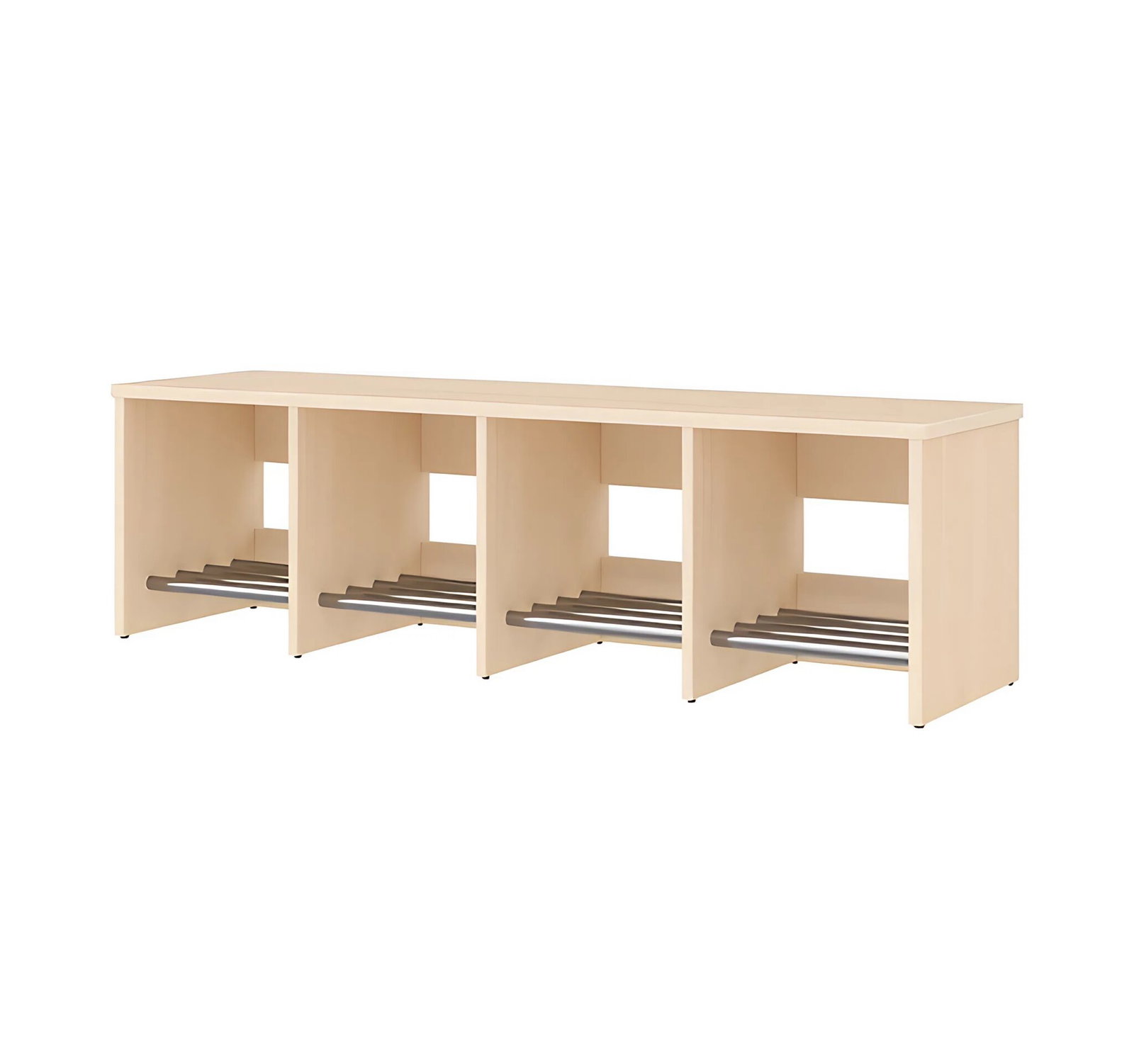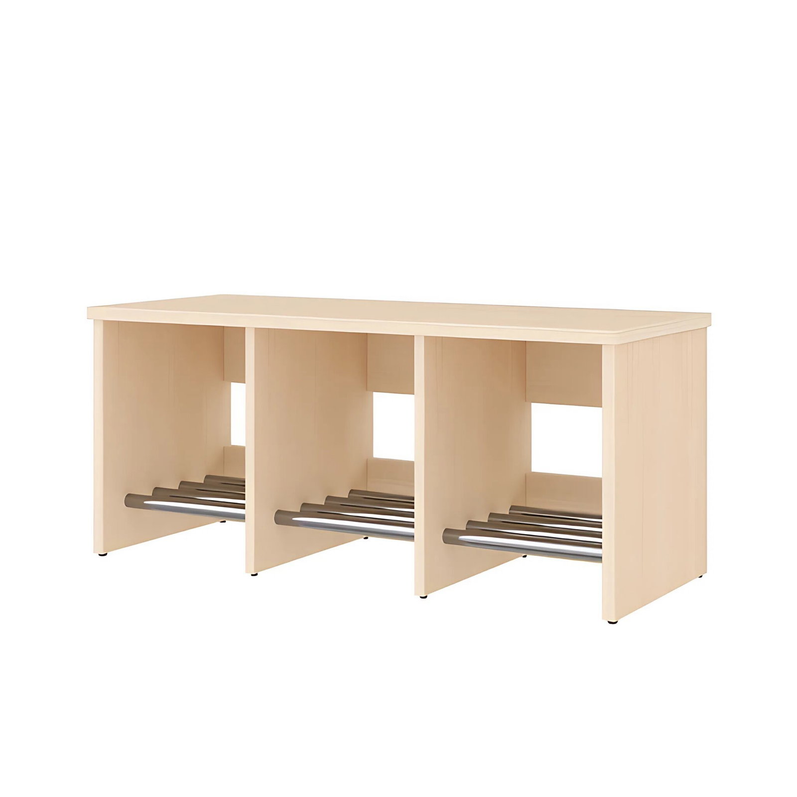 Machen Sie das tägliche An- und Ausziehen zu einem komfortablen und geordneten Ritual mit der Garderobenbank von WISDOM. Speziell für die dynamischen Anforderungen in Kindergärten, Schulen und Horten konzipiert, kombiniert diese Bank eine bequeme Sitzgelegenheit mit praktischer Aufbewahrung. Gefertigt aus robustem Schichtholz in einer warmen Ahorn-Optik und ausgestattet mit einem langlebigen Schuhrost, bietet sie den perfekten Platz, um bequem die Schuhe zu wechseln, während Straßenschuhe ordentlich und luftig verstaut sind. Verfügbar in vier verschiedenen Längen, passt sich diese Bank flexibel an jeden Raum an und wird schnell zum unverzichtbaren Bestandteil eines jeden gut organisierten Eingangsbereichs.
