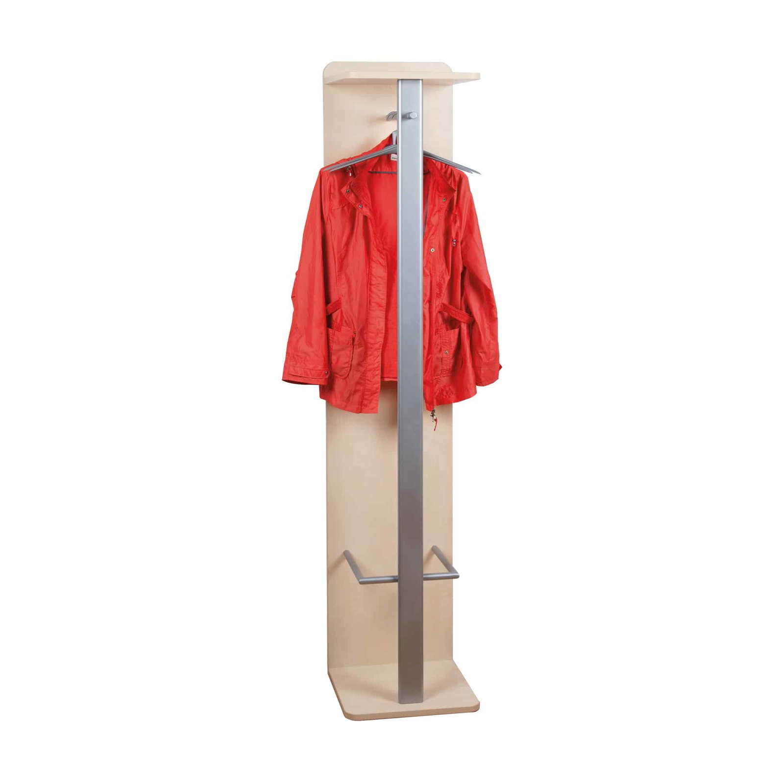 - Vollständige Garderobenlösung: Dieses Modell vereint alle wichtigen Funktionen in einem schlanken Design. Die obere Ablage ist perfekt für Hüte, Mützen oder Taschen. An der stabilen Kleiderstange finden Jacken und Mäntel auf Bügeln knitterfrei Platz, während zusätzliche Haken ideal für Schals, Schlüssel oder Gästebekleidung sind.