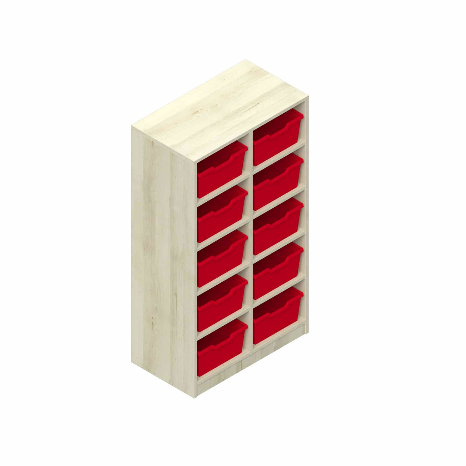 Garderobenregal – 10 offene Fächer mit 10 Kunststoffboxen für Kindergarten & Krippen