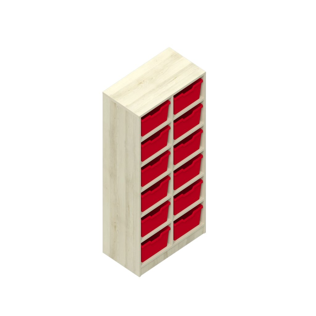Garderobenregal – 12 offene Fächer mit 12 Kunststoffboxen für Kindergarten & Krippen