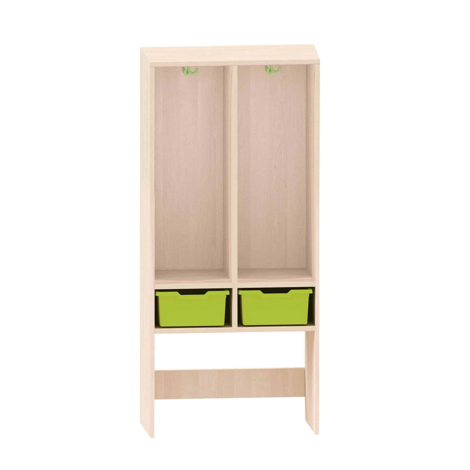 Technische Daten Garderobenregal mit 2 getrennten Fächern oben und 2 ABS-Boxen unten