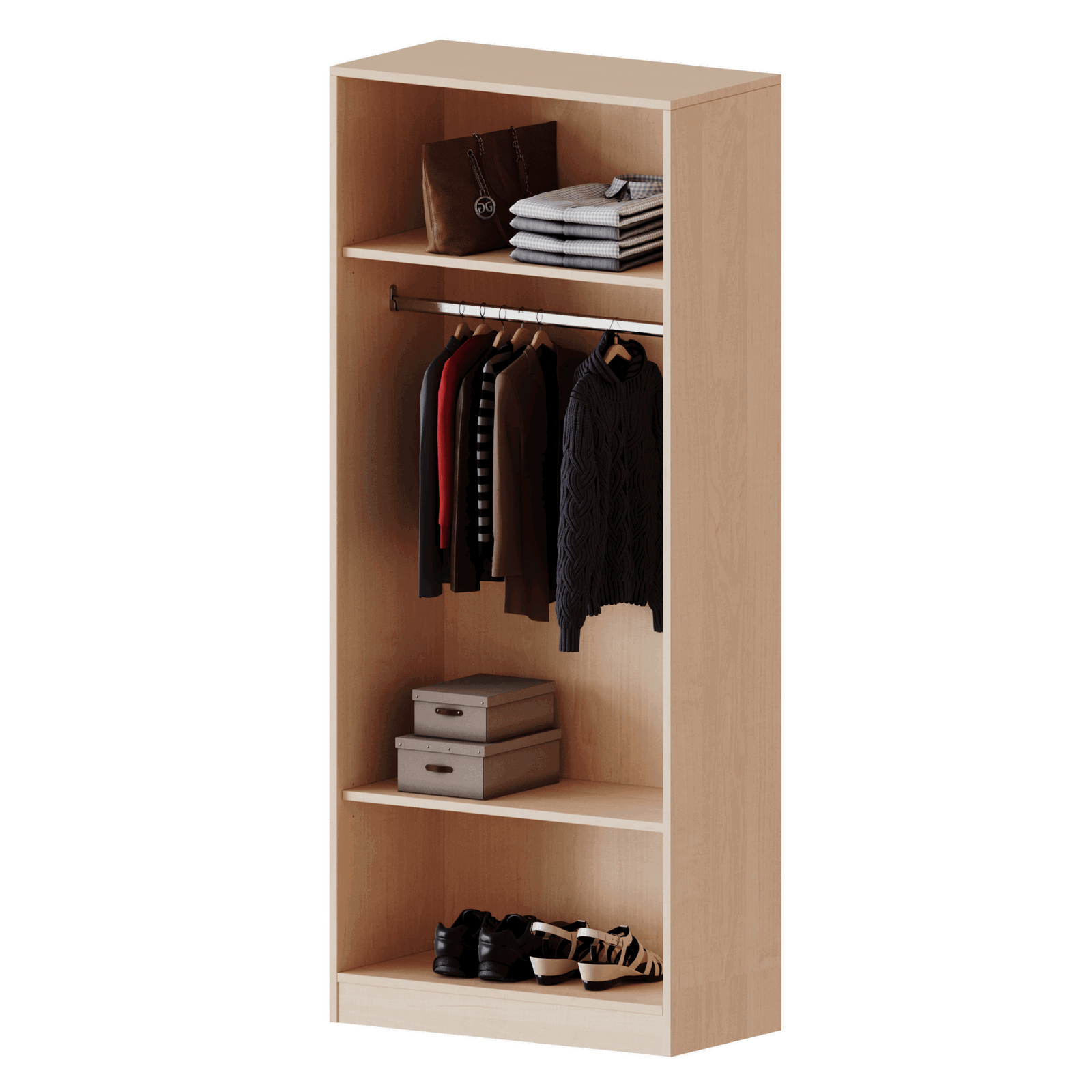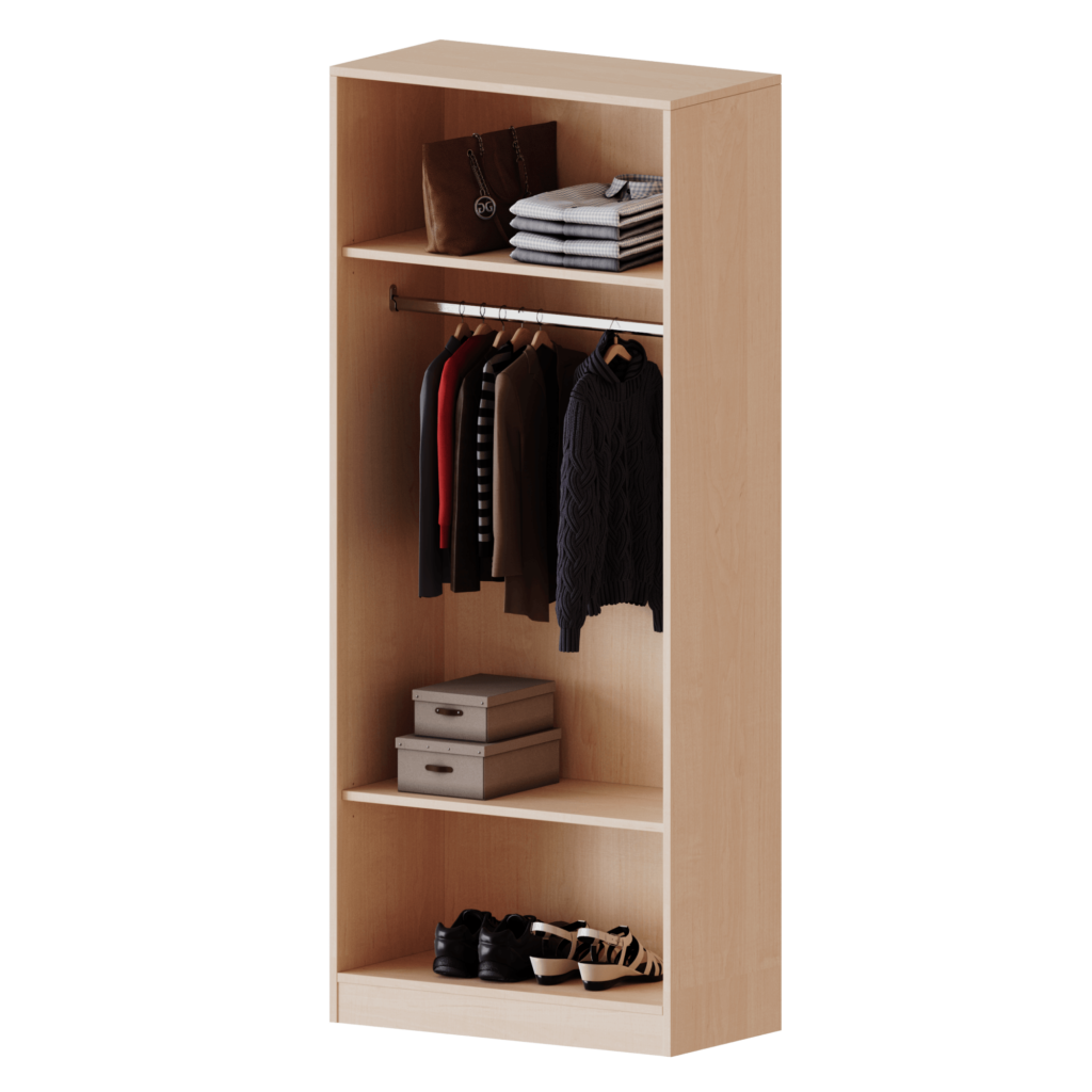 Im Regal befinden sich 2 Einlegeböden (Hut- und Schuhablage) sowie eine Kleiderstange.