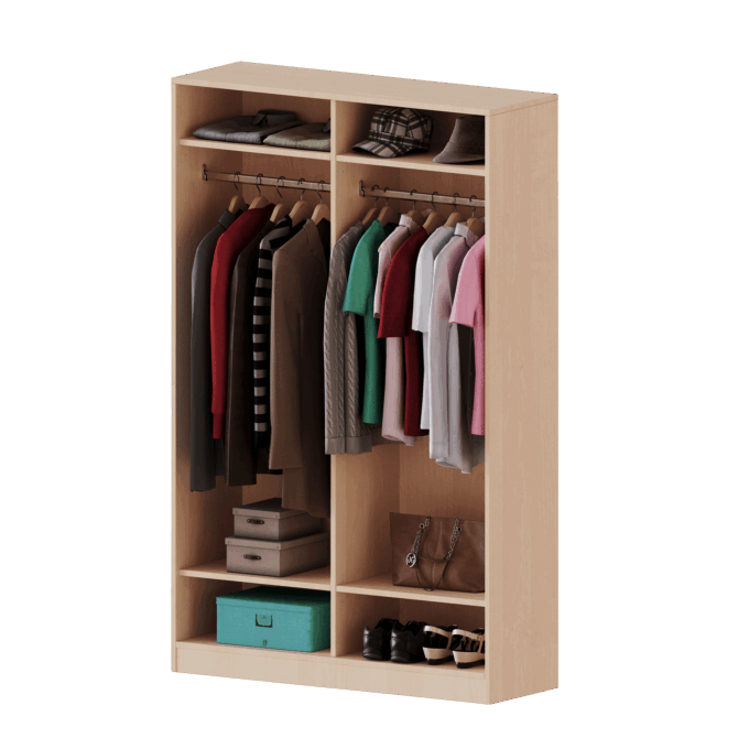 Alle Garderobenregale werden aus den besten Materialien hergestellt und sind so konzipiert, dass sie robust und zuverlässig sind. Wir verwenden melaminbeschichtete E1-Feinspanplatten, die FSC-zertifiziert und frei von Formaldehyd sind. Damit die Kanten besonders robust sind, verwenden wir 2 mm starke ABS-Kanten, die mit Hochtemperatur sicher verleimt werden. Wir stellen dir in unserer Dekorpalette eine Vielzahl von Dekoren zur Auswahl. Die Einlegeböden sind in einem 32-mm-Raster verstellbar.