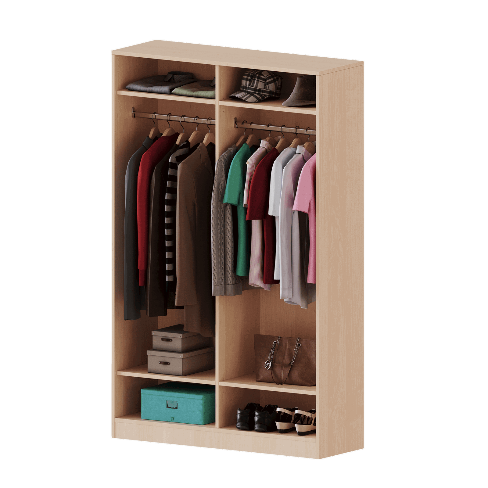 Im Regal befinden sich 2 Einlegeböden (Hut- und Schuhablage) sowie eine Kleiderstange.